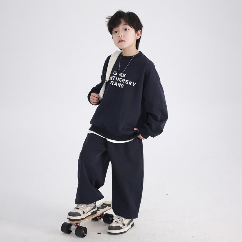 子供用スウェットセットアップ 男の子 秋物 スポーツウェア 上下セット 2点セット 長袖 長ズボン 普段着 部屋着 グレー 紺色