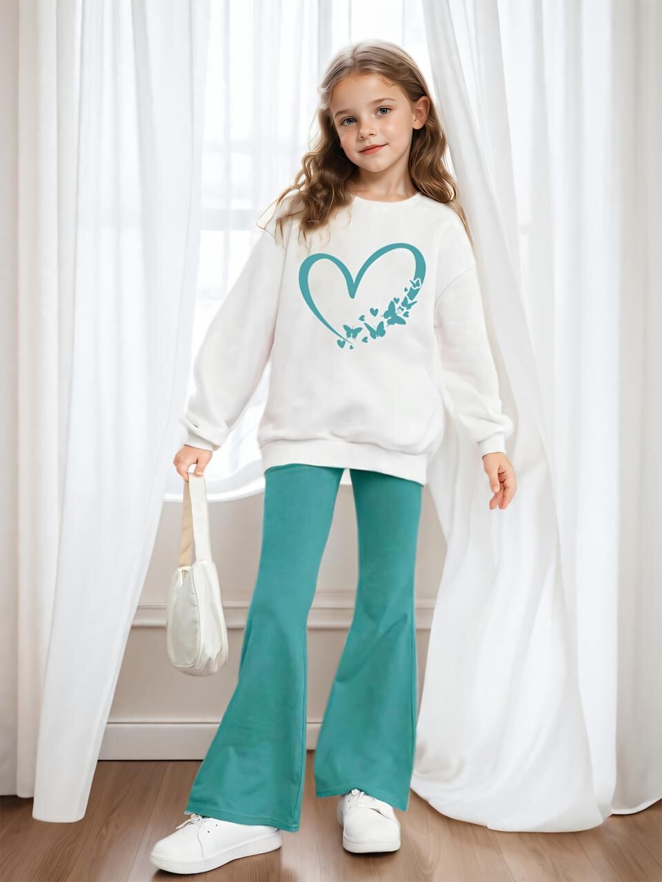 キッズ ガールズ パンツセット 長袖 トレーナー ベルボトム 愛 プリント 秋冬 2点セット 運動着 普段着