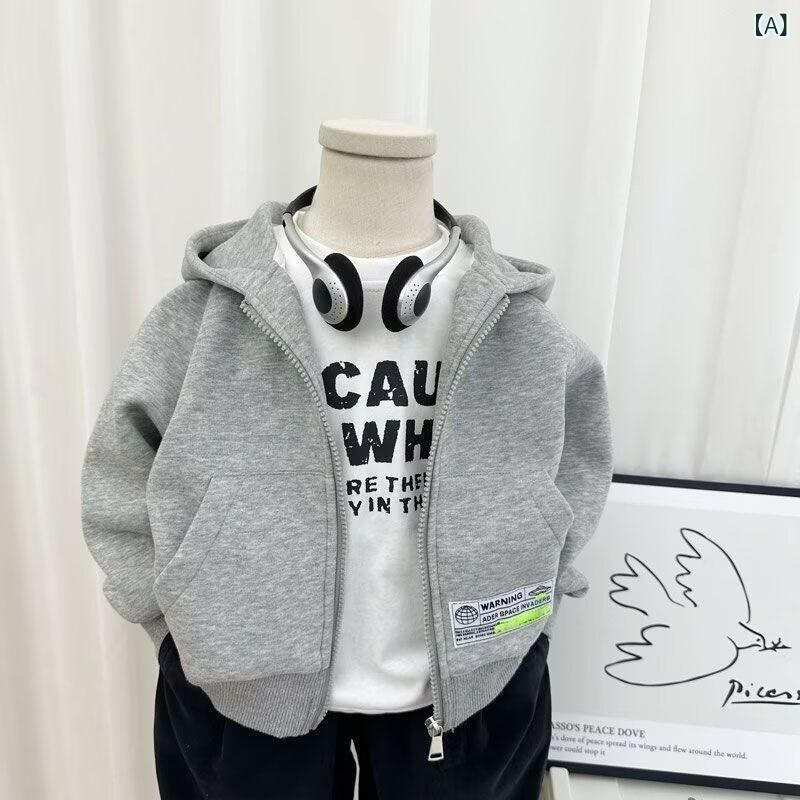 キッズ パーカー 男の子 春秋 ジップアップ スウェット 子供 カジュアル スポーツ ウェア 長袖 薄手 グレー