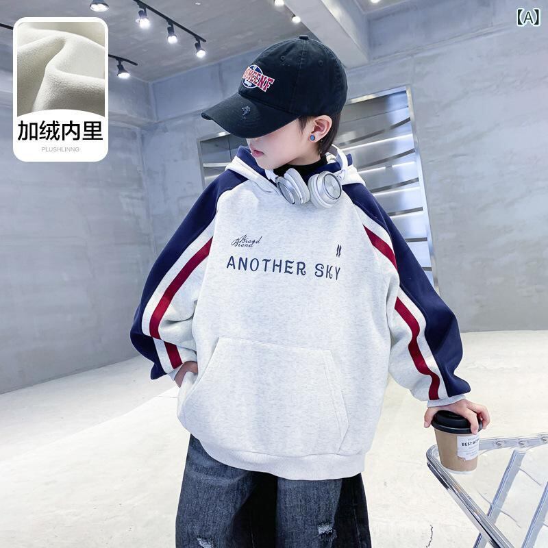 キッズ 男の子 裏起毛 スウェット パーカー 秋冬 スポーツ 普段使い 部屋着 撞色 アルファベット