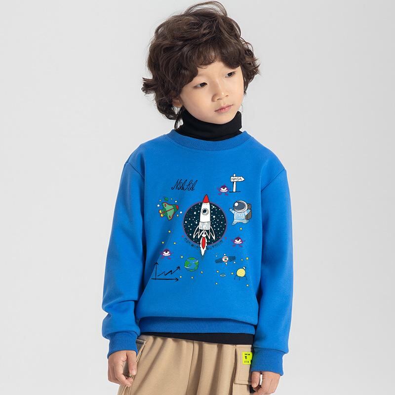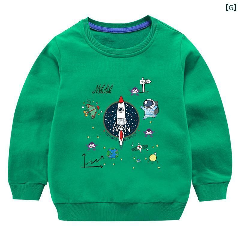 子供服 スウェットシャツ 男児 女児 長袖 薄手 春秋 冬 綿100% 丸首 プルオーバー プリント 宇宙 ロケット柄 90 100 110 120 130 140 150cm