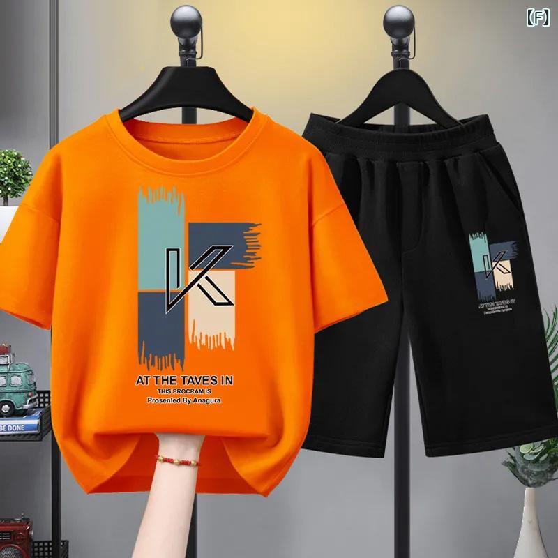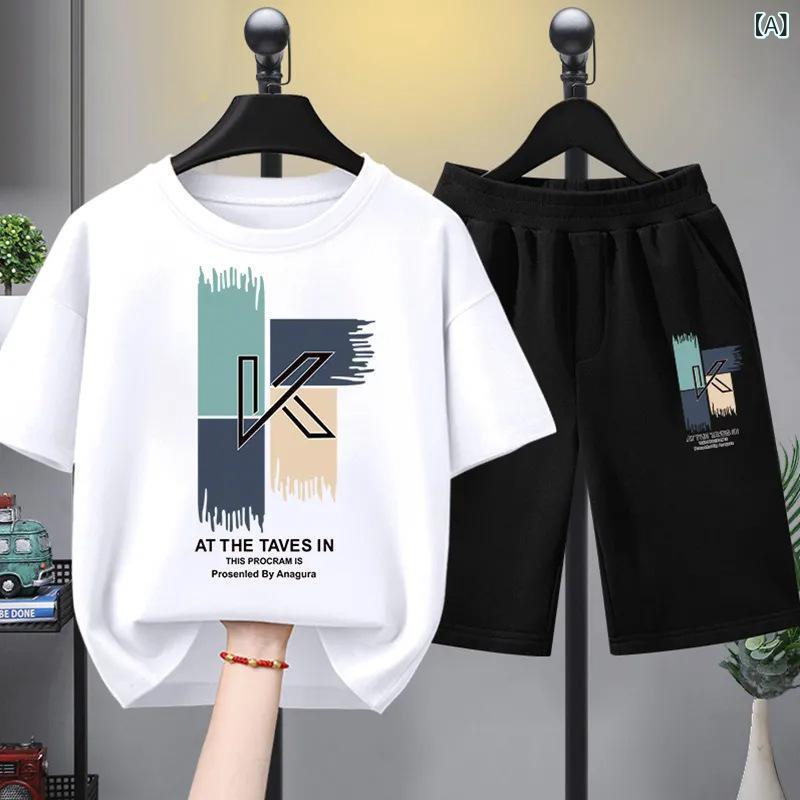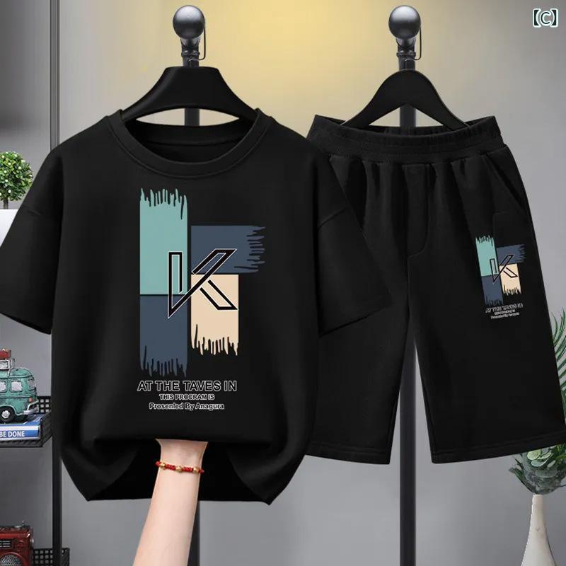 子供服 夏用セットアップ 男の子 半袖 短パン 上下セット 薄手 通気性 運動着 ボーイズ キッズ カートゥーンプリント Tシャツ ハーフパンツ 2点セット