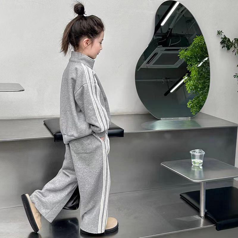 子供用セットアップ 女の子 春秋 ジャージ 上下セット キッズ スポーツウェア 8歳以上 中大童 長袖 ハーフパンツ 綿 運動着 部屋着 グレー
