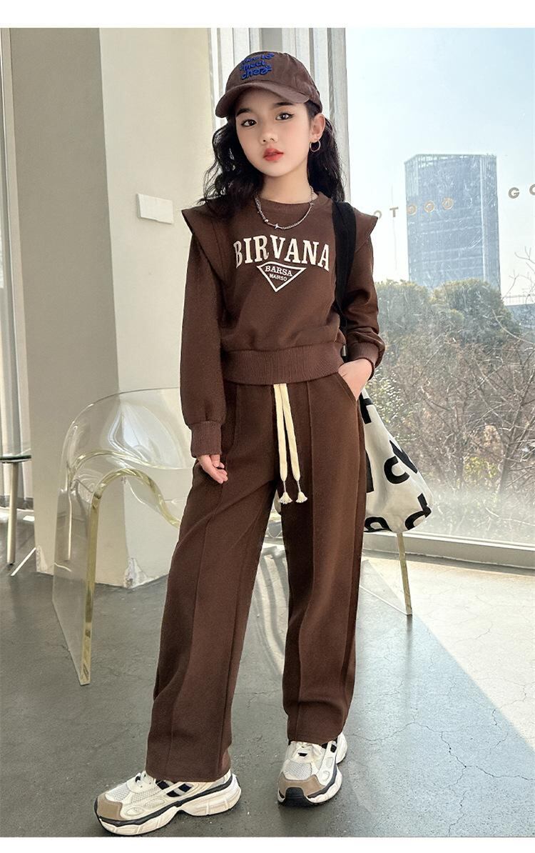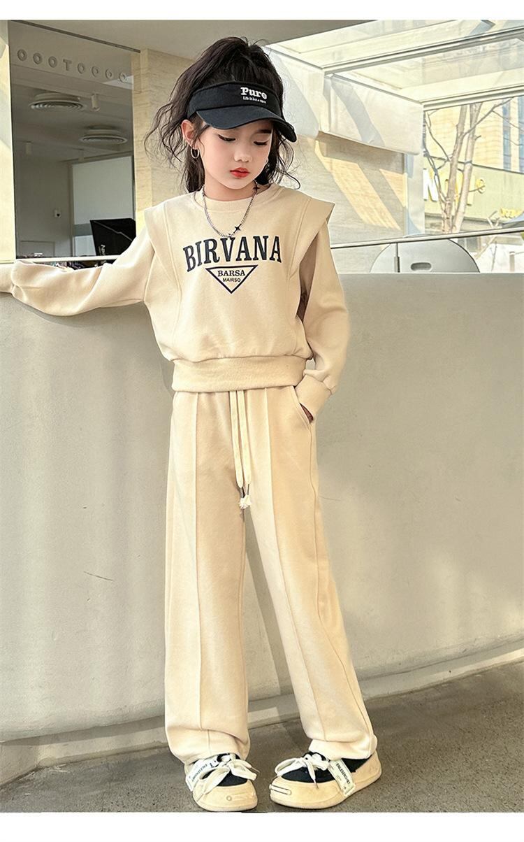 キッズ 女の子 スウェット セットアップ 春秋 長袖 トップス パンツ 上下 2点セット 子供服 普段着 部屋着 スポーツ ウェア 杏色 120cm 130cm 140cm 150cm 160cm 170cm