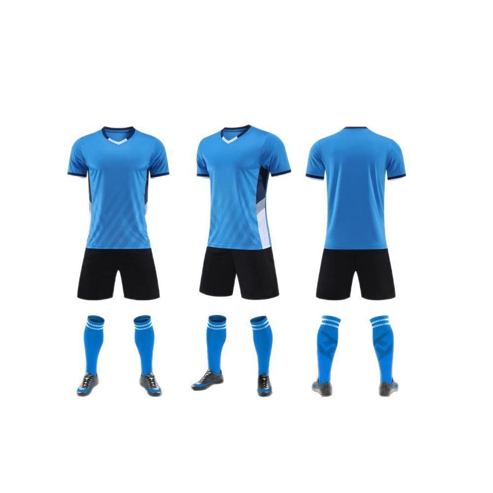 サッカーウェア 上下セット 男女兼用 大人 子供用 スポーツウェア 半袖 試合着 練習着 ストライプ ポリエステル 吸湿速乾 白 青 赤 黄