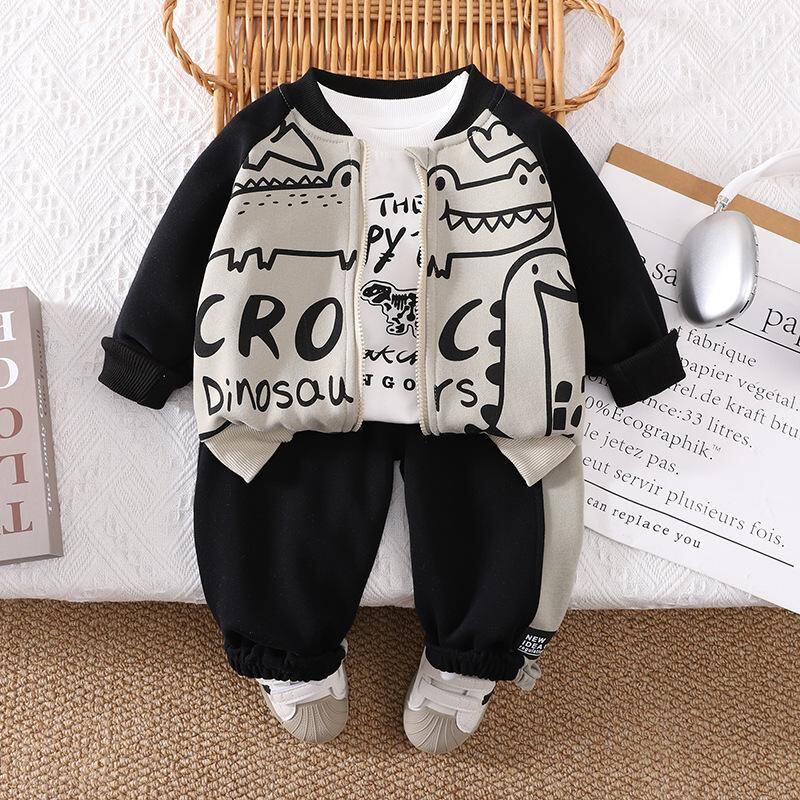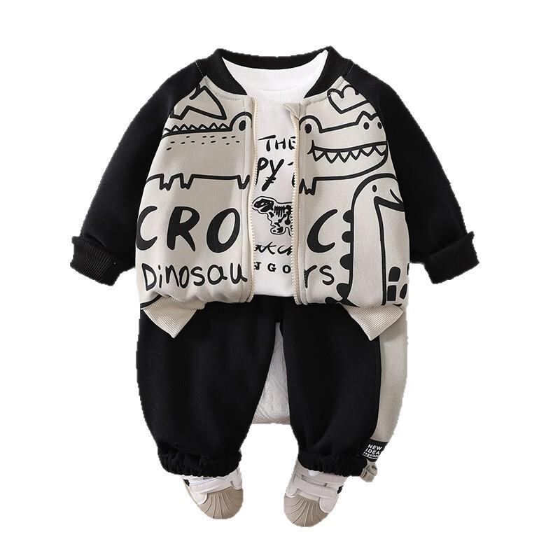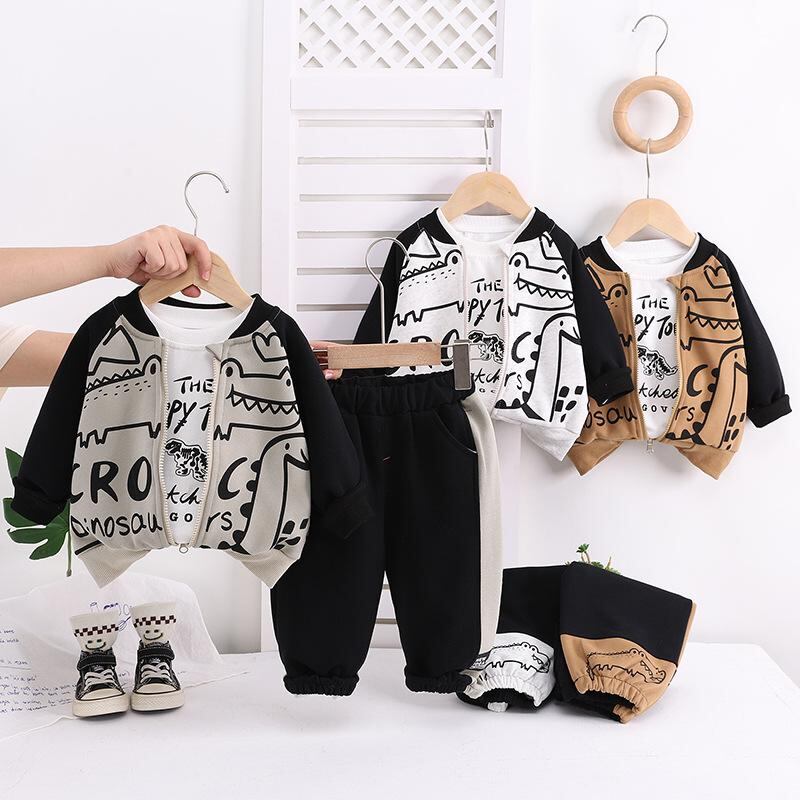 キッズ ボーイズ ベビー服 上下セット 恐竜 長袖 トップス パンツ ジャケット 3点セット かわいい 春秋 普段着 部屋着 綿90% セットアップ 80 90 100 110 120cm