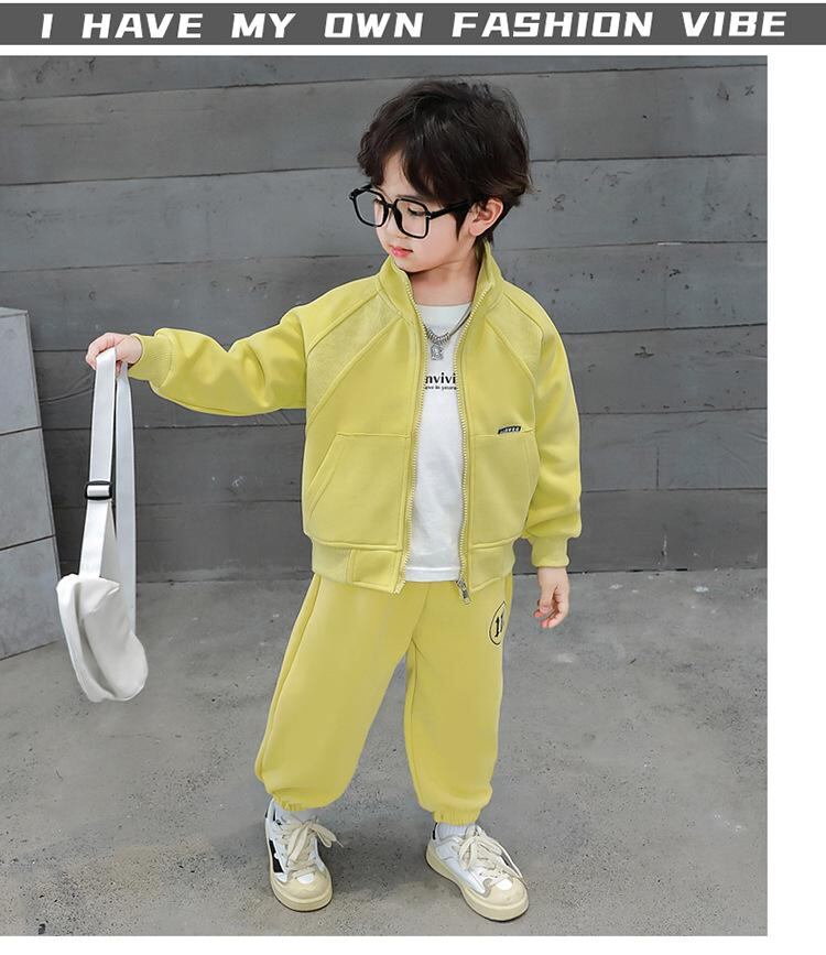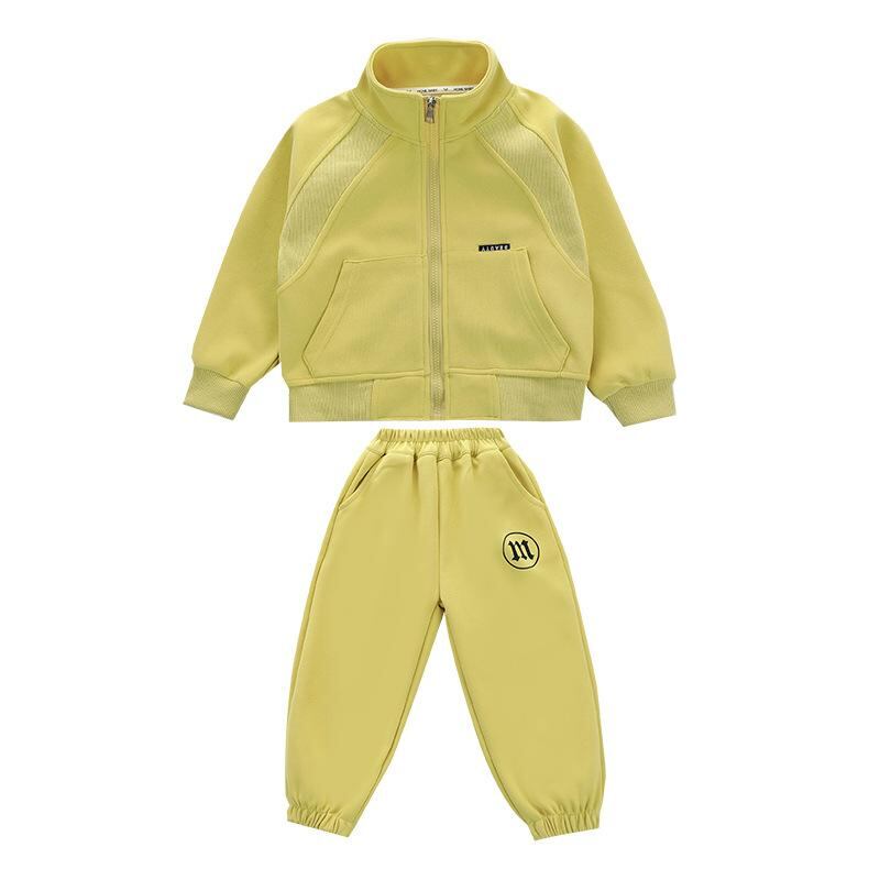 キッズ ボーイズ ジャージ 上下セット 子供服 長袖 ジップアップ ジャケット パンツ 2点セット 男の子 スポーツ ウェア 運動着 普段着 部屋着 綿 春秋 グレー イエロー