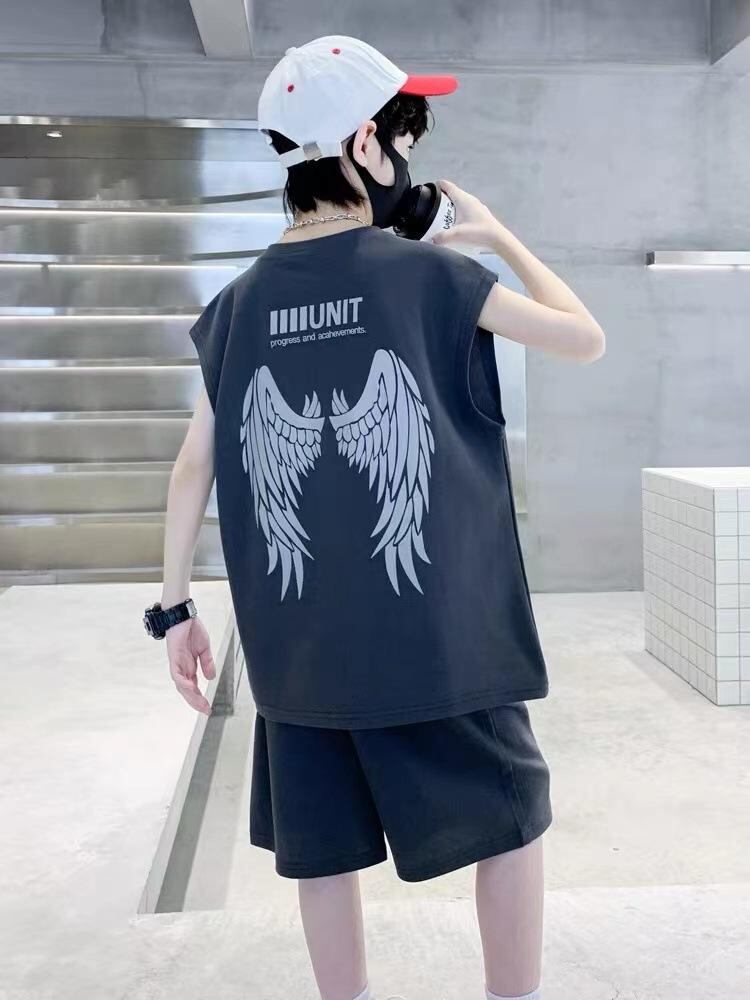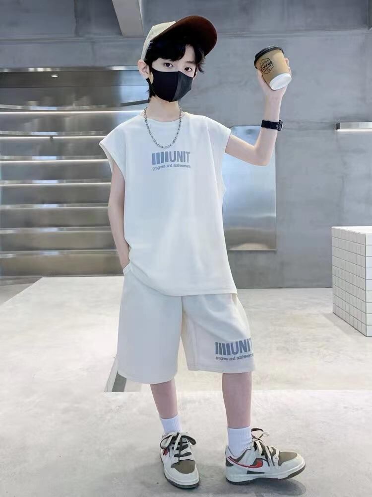 キッズ 男の子 夏服 セットアップ ノースリーブ タンクトップ ショートパンツ 上下セット スポーツ 普段使い 薄手 涼しい 8歳 9歳 10歳 11歳 12歳 13歳 14歳 グレー ベージュ
