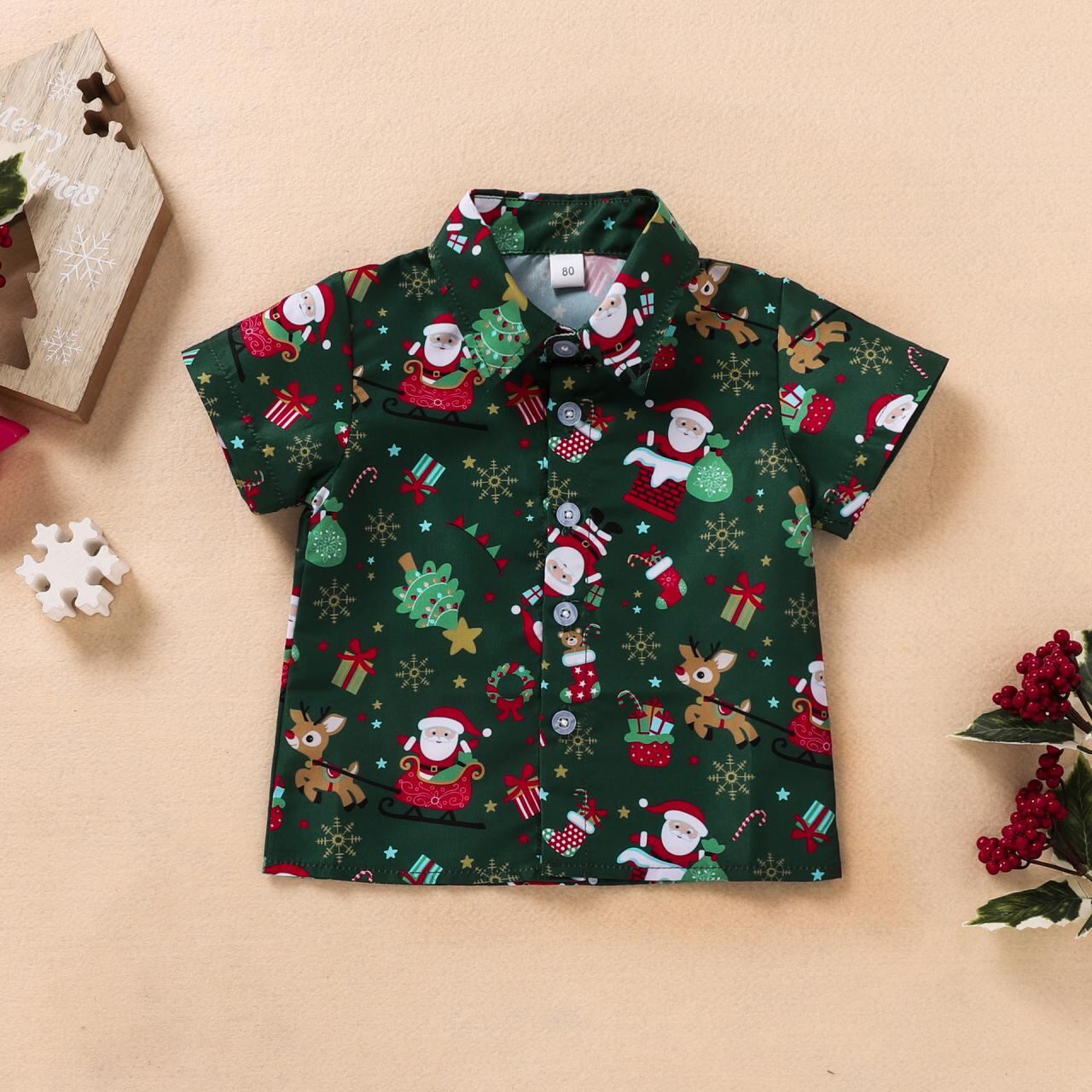 シャツ キッズ 半袖シャツ 短パン 上下セット 子供服 男の子 カジュアル 綿 プリント アニマル柄 グリーン ワインレッド 80cm 90cm 100cm 110cm 120cm
