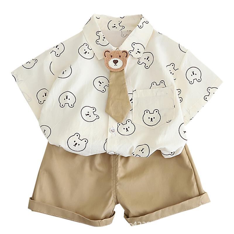 キッズ 男の子用 半袖シャツ パンツ セットアップ 夏物 薄手 綿 1歳 2歳 3歳 かわいい カジュアル