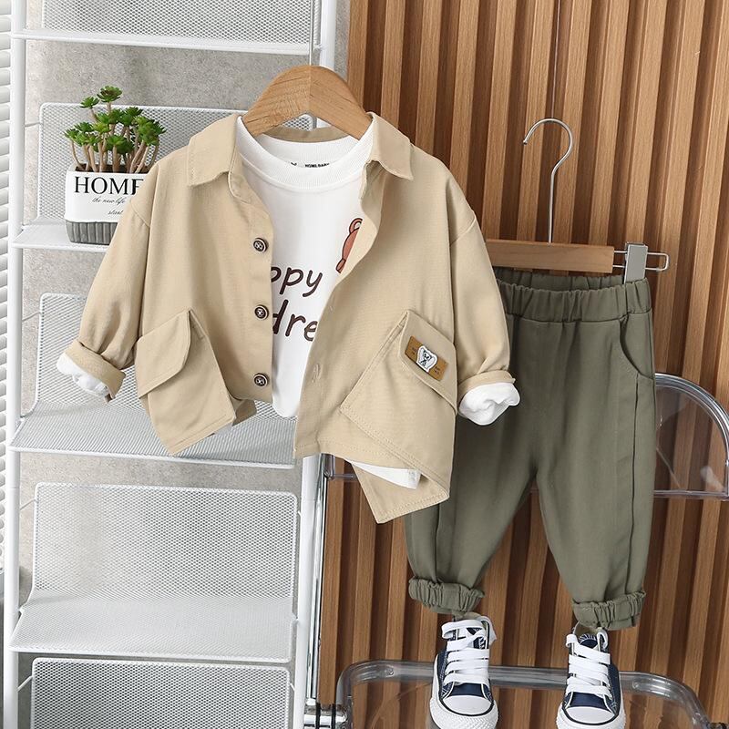 キッズ ボーイズ 男の子 秋物 長袖 ジャケット ロングパンツ 3点セット コットン 幼児 普段着 スポーツ ストライプ