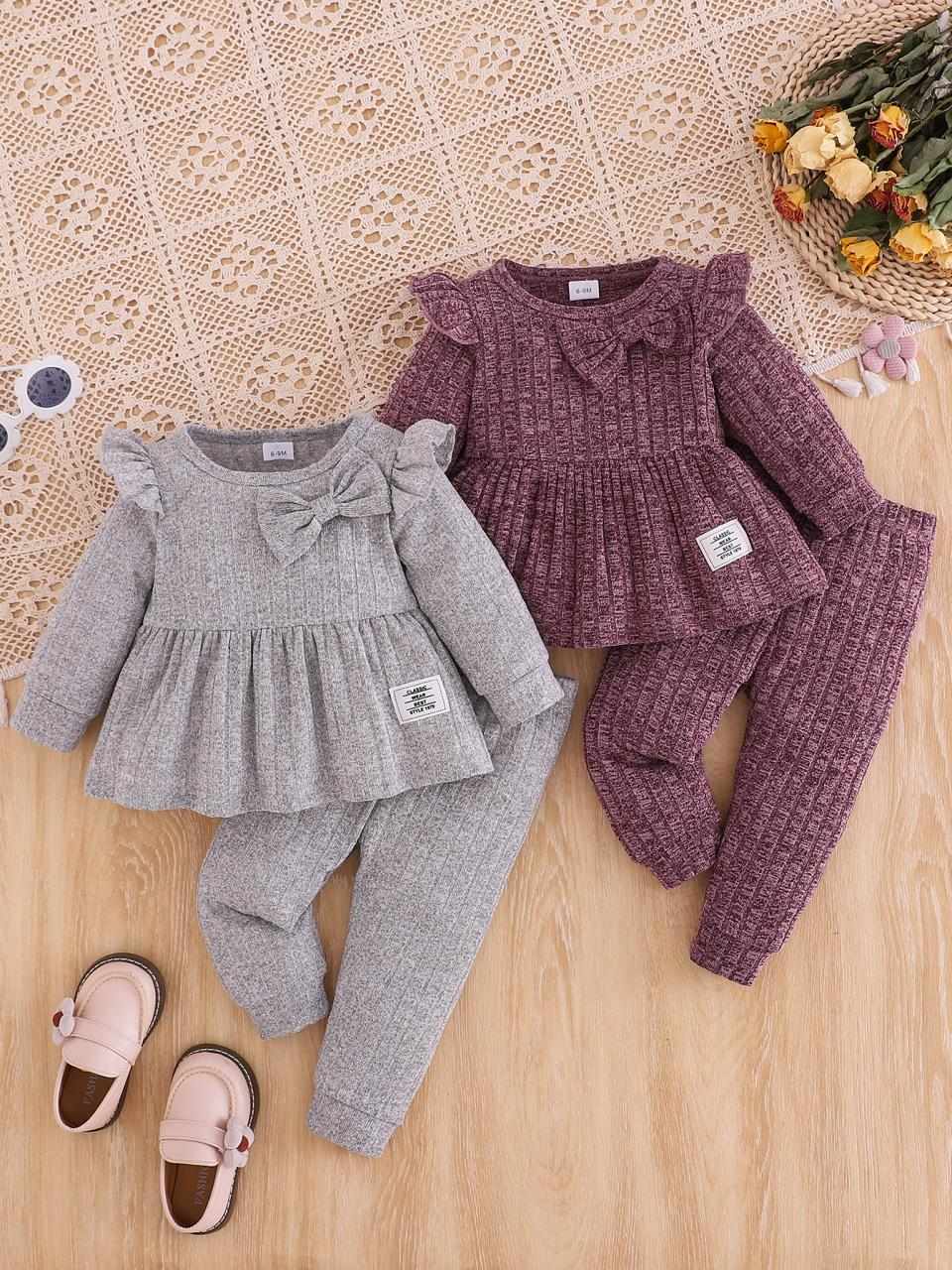 ベビー服 女の子 上下セット ニット セットアップ 長袖 トップス 長ズボン 幼児 赤ちゃん 秋冬 普段着 かわいい 快適 伸縮性