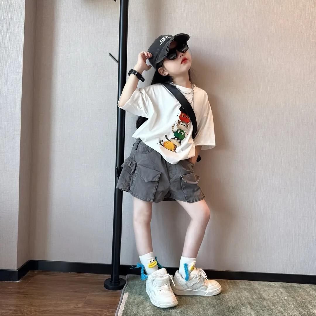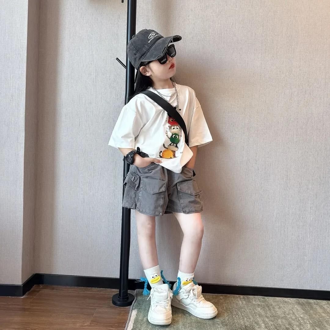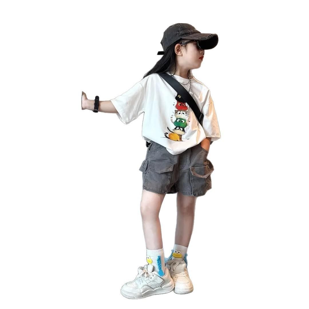 キッズ 女の子 セットアップ 夏物 カジュアル 半袖Tシャツ デニムショートパンツ 上下セット 薄手 かわいい アニマルプリント