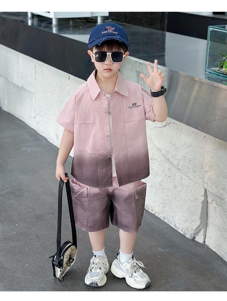 シャツ キッズ 半袖 グラデーション セットアップ 子供服 上下セット 薄手 コットン 男の子 幼児 小学生 カジュア