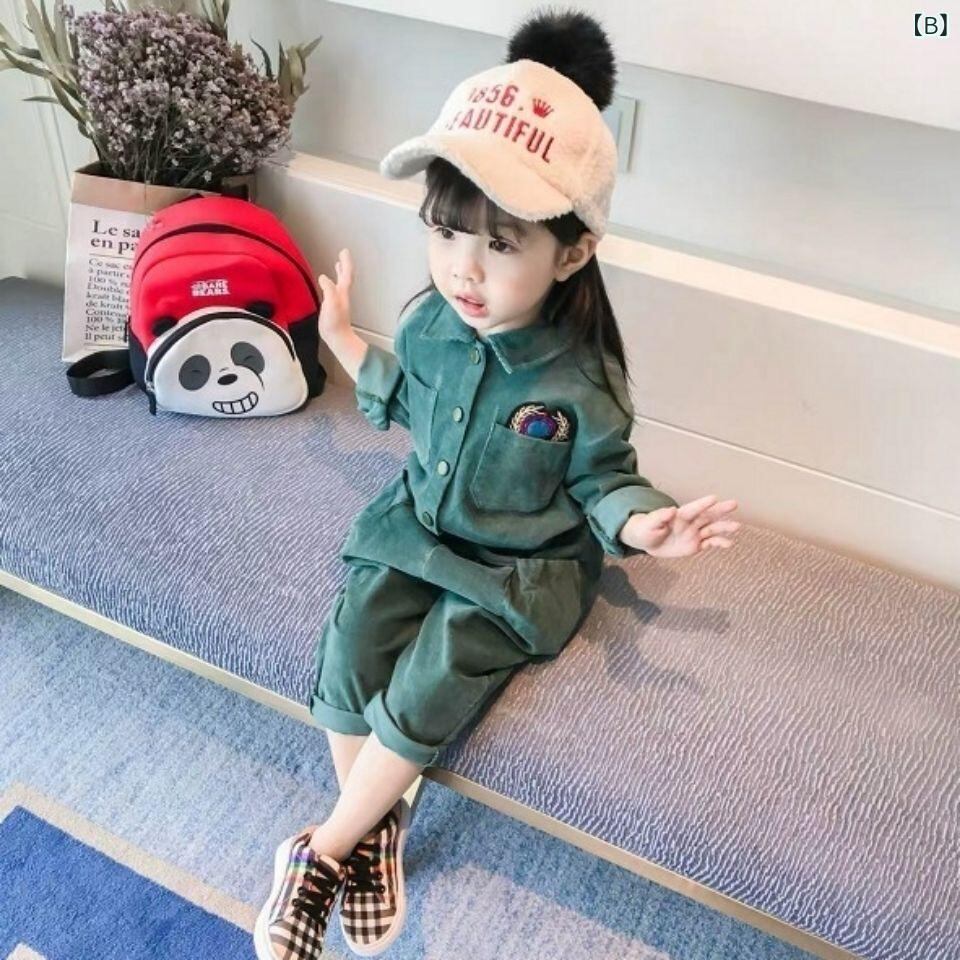 キッズ ベビー服 上下セット コーデュロイ シャツ パンツ 2点セット 長袖 長ズボン 男の子 女の子 赤ちゃん 幼児 普段着 かわいい おしゃれ 80 90 100 110 120cm 春秋