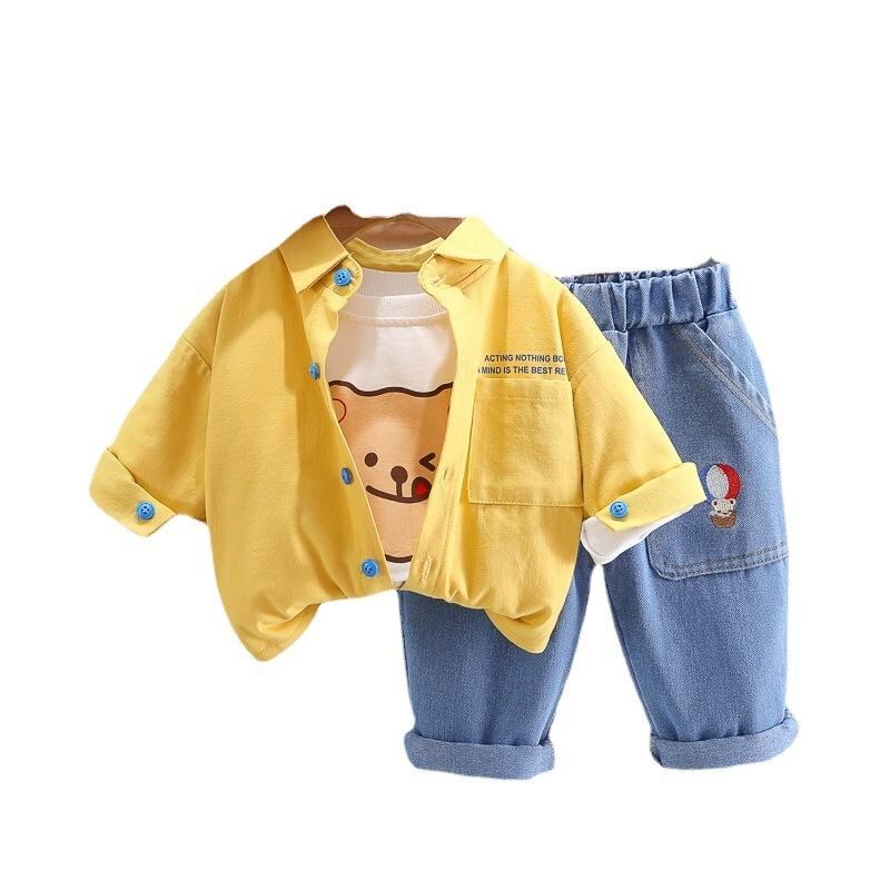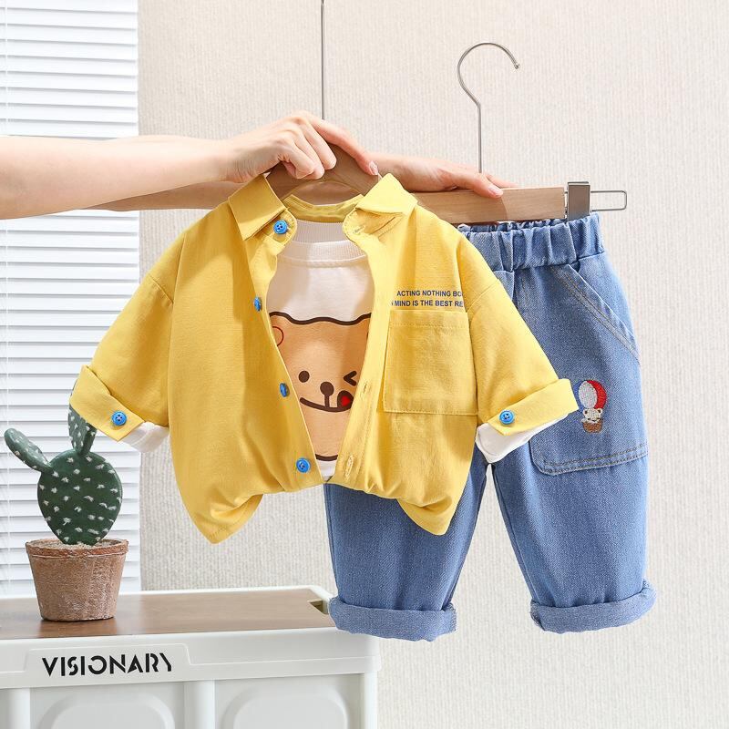 キッズ 子供用 長袖シャツ デニムパンツ セットアップ 春秋 綿100% カジュアル 男の子 3点セット 80cm 90cm 100cm 110cm 120cm