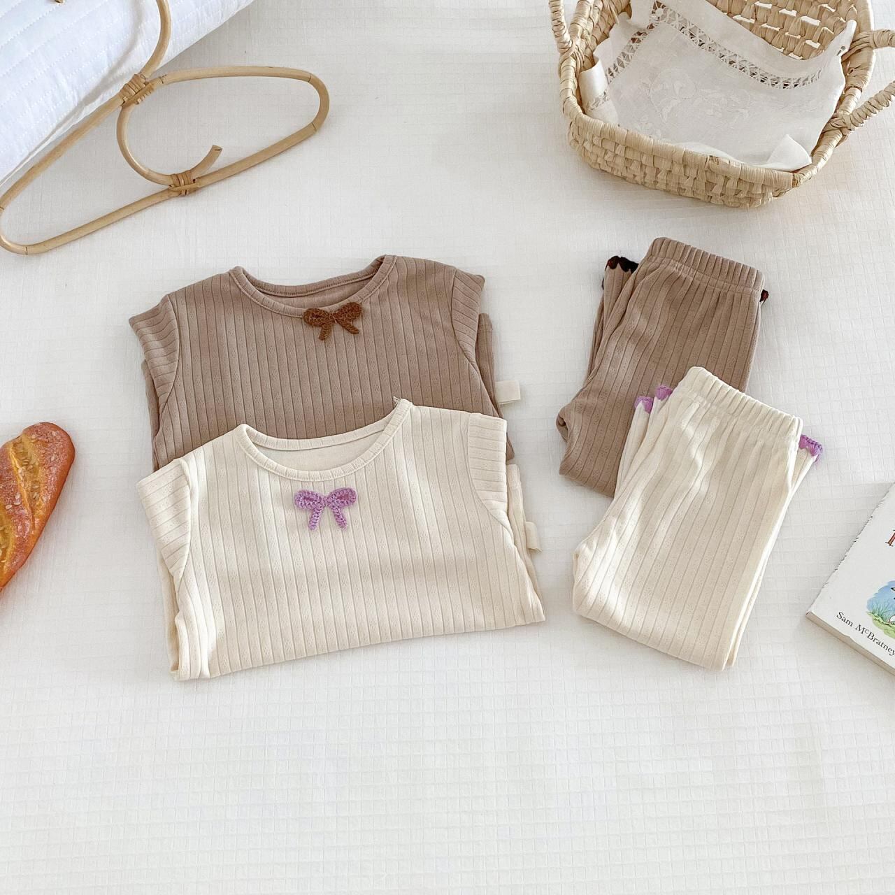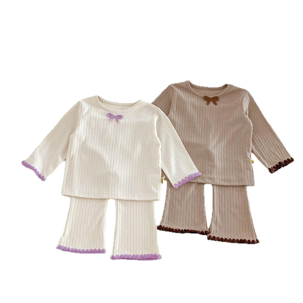 ベビー服 女の子 上下セット 長袖 トップス パンツ 2点セット 綿100% パジャマ 部屋着 春秋 ベージュ系