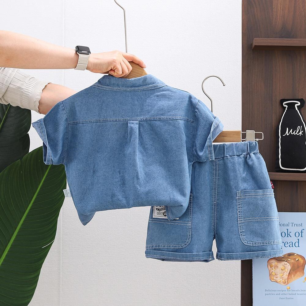 子供服 上下セット シャツ デニム ハーフパンツ 3点セット 男の子 ベビー 幼児 薄手 ボーイズ 夏服 かわいい おしゃれ 80 90 100 110 120