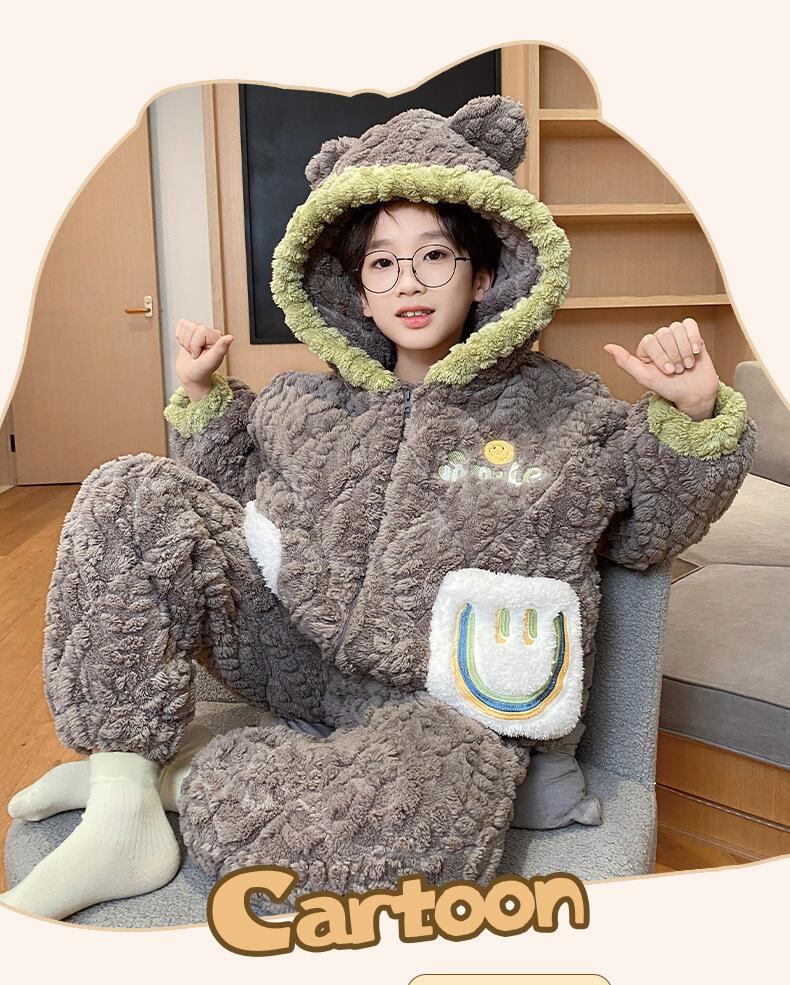 子供用パジャマ 男児 青少年用 厚手 裏起毛 三層構造 フランネル あったか 秋冬 かわいい 部屋着 ルームウェア