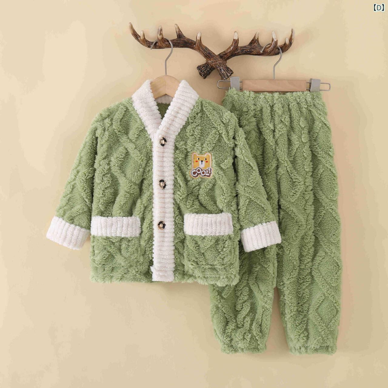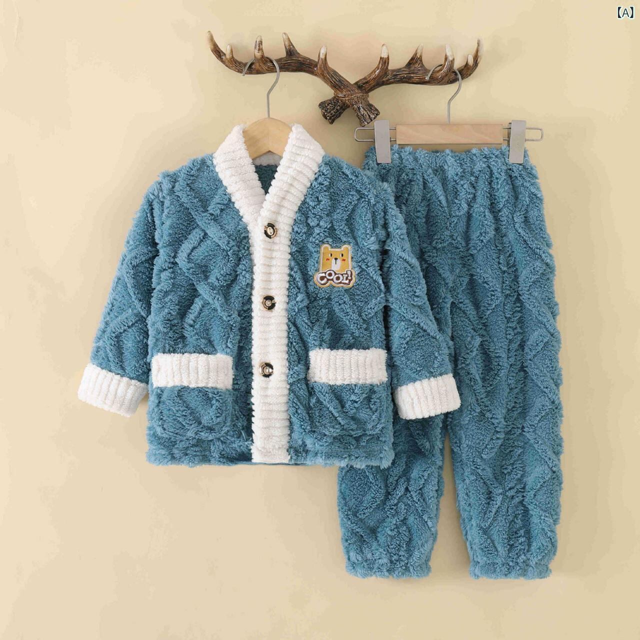 子供用パジャマ 秋冬 子供服 フランネル 女児 男児 中大童 ベビー ホームウェア 厚手 保温 デニムブルー ピンク系 パープル グリーン ブラック ポリエステル 無地 上下セット