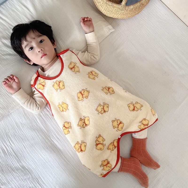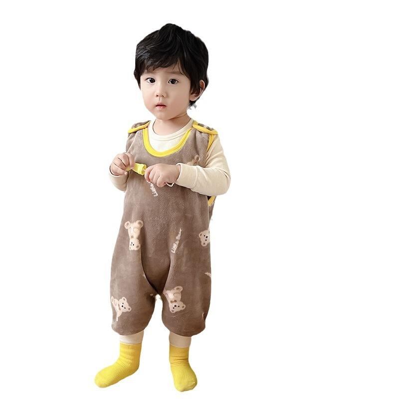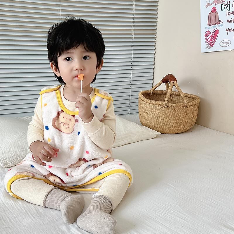 ベビー服 スリーパー フランネル 秋冬 子供用 寝袋 ベスト 部屋着 腹巻付き あったか 冷え防止 かわいい アニマル柄 総柄 パジャマ ルームウェア 70 80 90 100 110 120