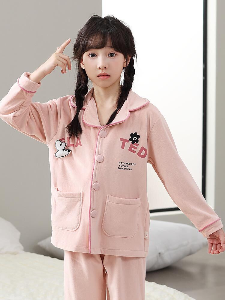 子供用パジャマ 女の子 海島 接触冷感 フランネル セットアップ 薄手 珊瑚フリース ルームウェア 寝巻き 部屋着 中大童(8歳以上、140cm以上) 米白 ピンク系 ライトグリーン 紫 保温 カートゥーン柄 ポリエステル