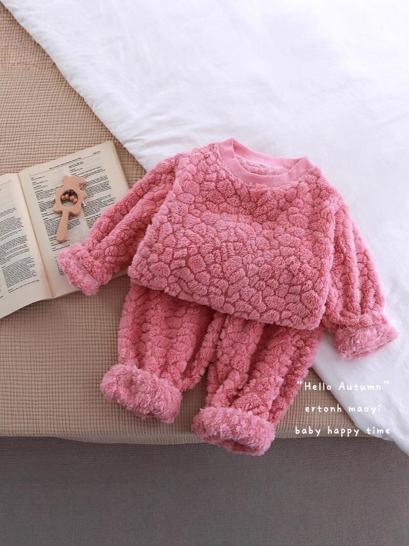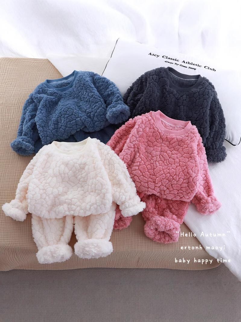 子供用フリースセットアップ ベージュ パジャマ 上下セット 部屋着 ルームウェア 保温 防寒 あったか 秋冬