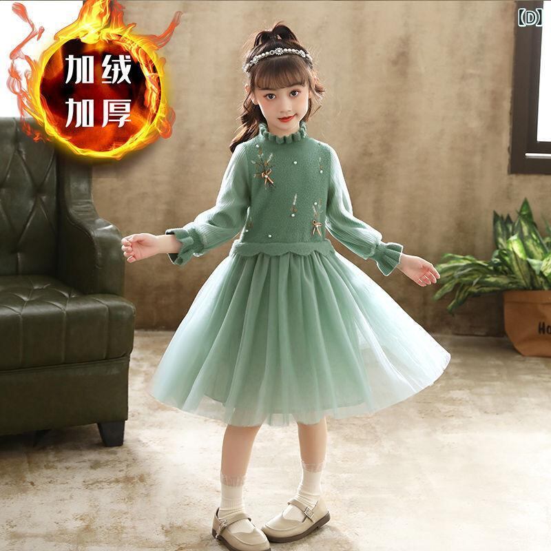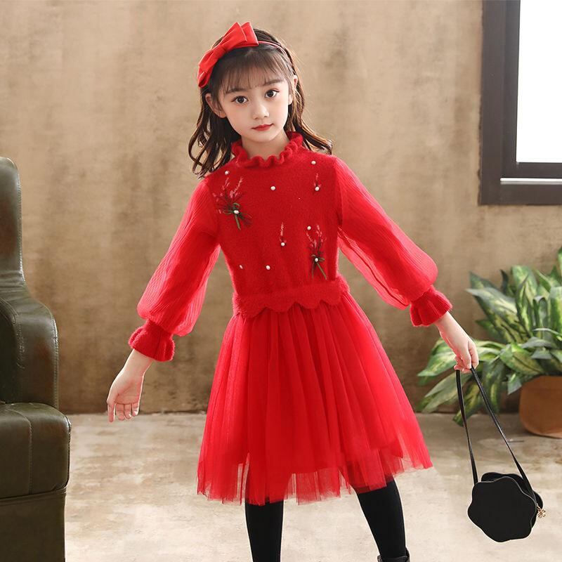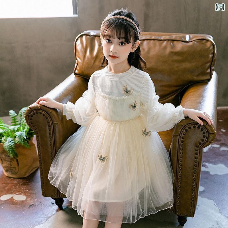 ワンピース キッズ 女の子 ニット Aライン チュール 春秋 冬 プリンセス チュニック レース ポリエステル かわいい 裏地付き