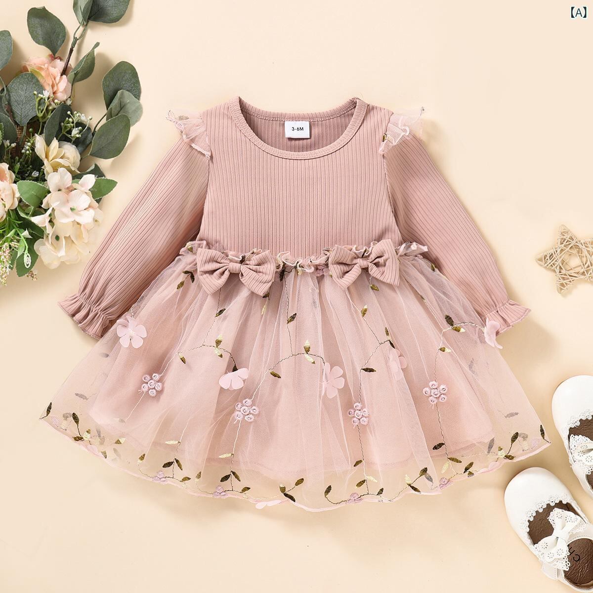 ワンピース 子供服 長袖ワンピース チュールスカート 女の子 春秋 ベビー かわいい チュール プリンセススカート 発表会 結婚式 パーティー お出かけ着 ポリエステル 綿 ピンク系