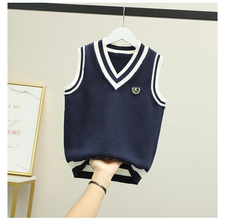 ベスト キッズ 秋冬 子供服 中学生 高校生 男の子 スクールベスト ニット ベスト コットン 制服 チョッキ 学院風 紺 白 100cm 110cm 120cm 130cm 140cm 150cm 160cm 170cm 180cm 190cm