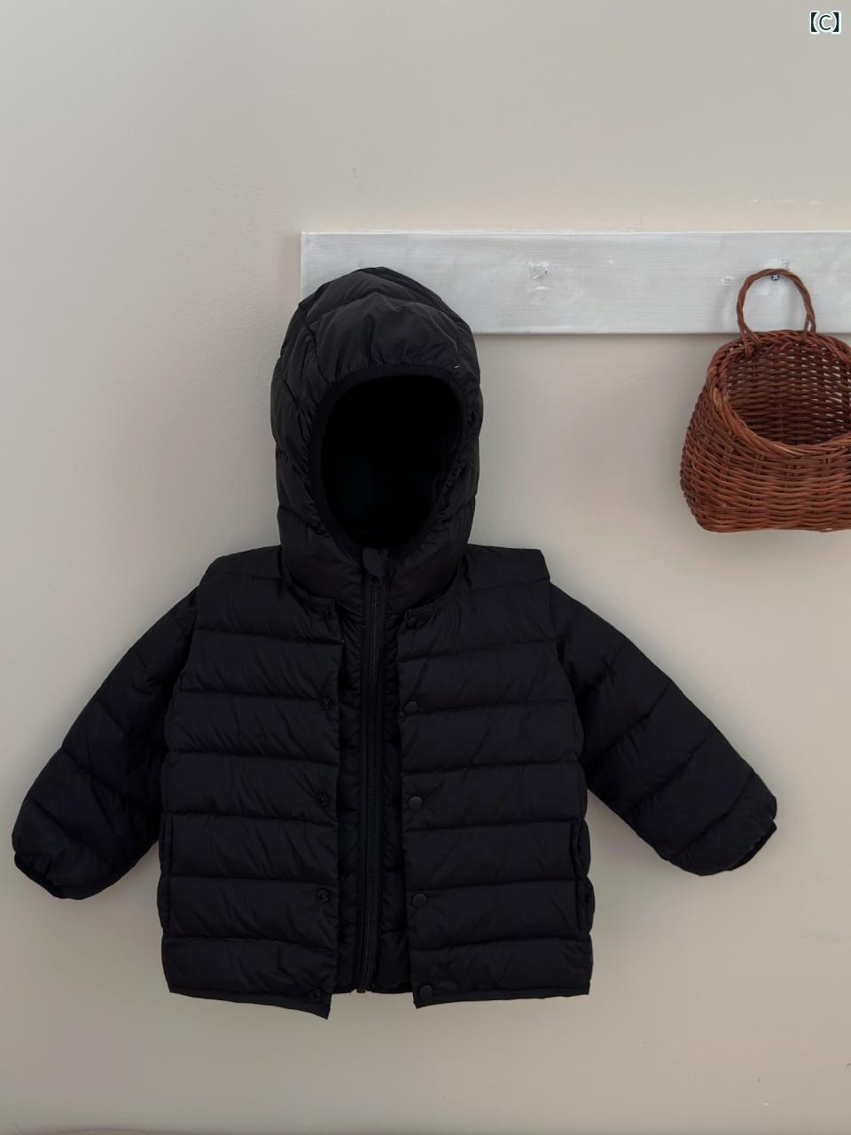 キッズ服 子供用羽毛ジャケット 長袖フード付きアウター 軽量 白ダックダウン 男女兼用 秋冬 90サイズ 100サイズ 110サイズ 120サイズ 130サイズ 140サイズ 150サイズ 160サイズ ピンク系 ベージュ ブラック ポリエステル