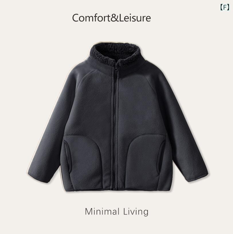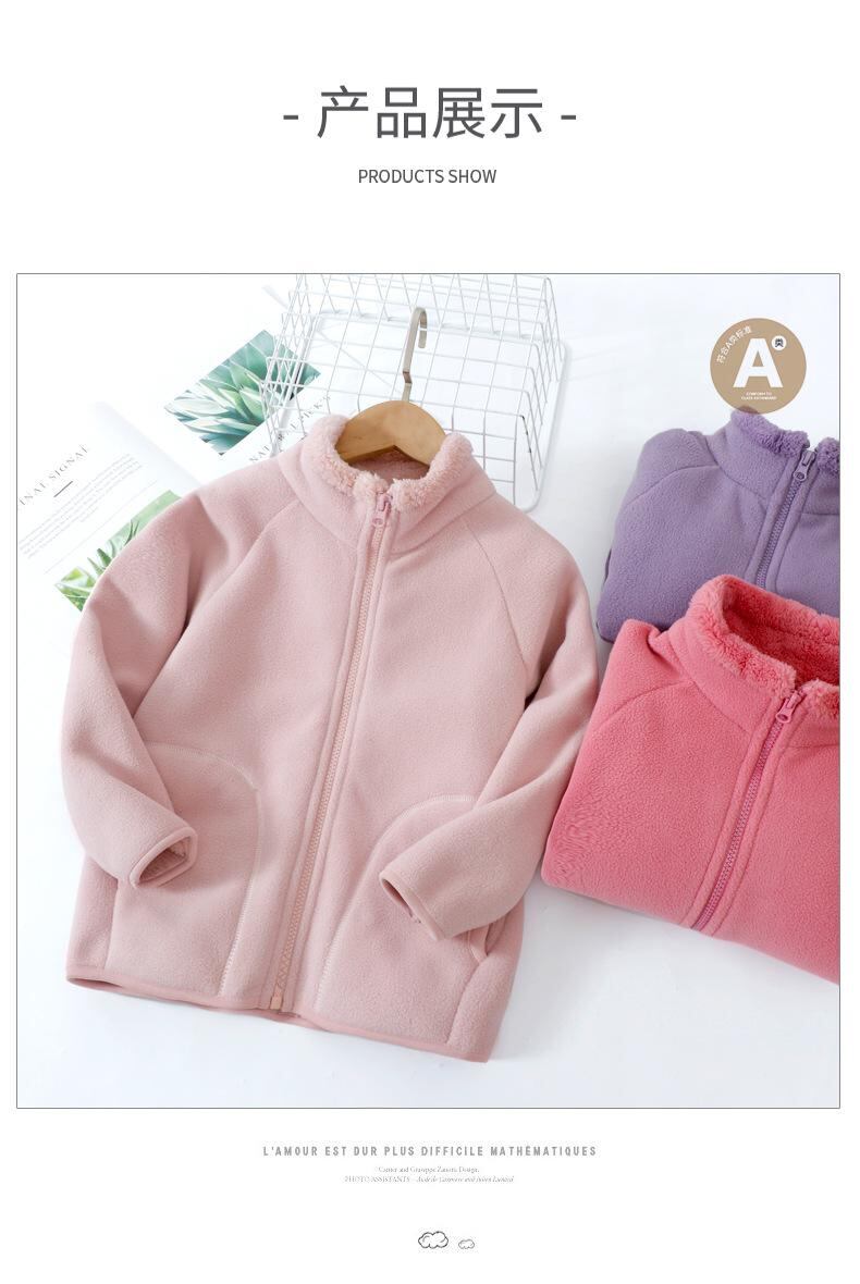 子供用フリースジャケット 親子ペア 厚手 防寒 アウター スクールユニフォーム 幼稚園 保育園 通園 男女兼用 秋冬 無地 100cm 110cm 120cm 130cm 140cm 150cm 160cm 170cm 180cm 浅咖 ピンク 深紫 果