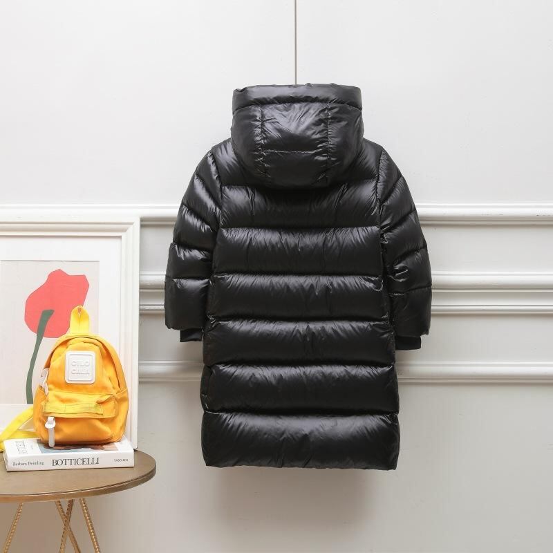 子供服 ダウンジャケット 男女兼用 中 крупный 子供 ロング丈 膝丈 ダックダウン 90% 厚手 防寒 アウター 秋冬 ブラック