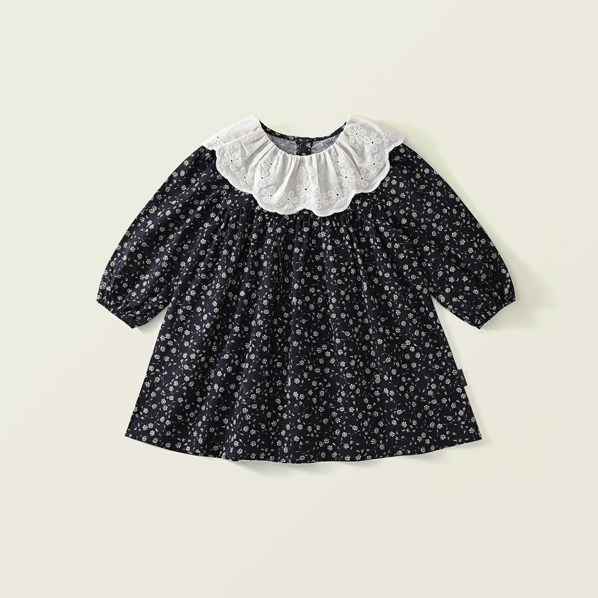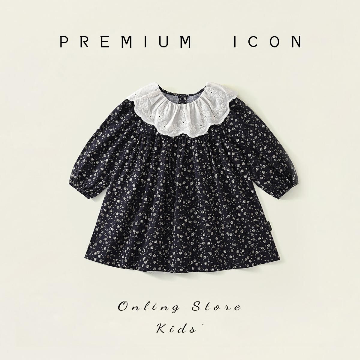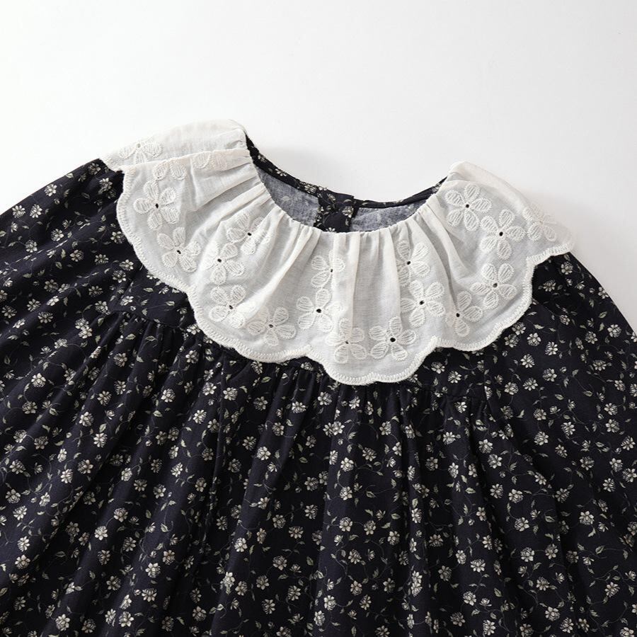 ワンピース 女の子 レトロ 小花柄 長袖 春秋 子供 提花 襟付き 綿100% プリンセス 膝丈ワンピース 90cm 100cm 110cm 120cm 130cm 140cm