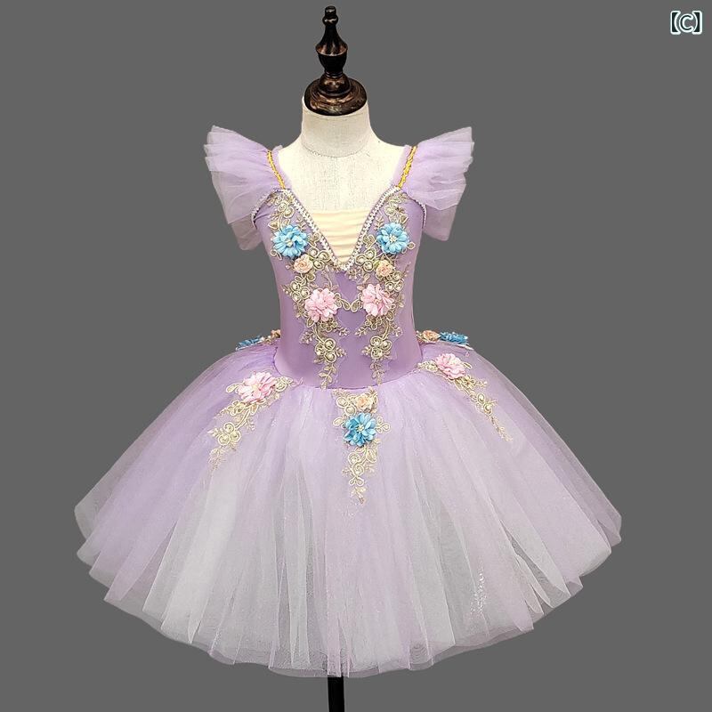 バレエ レオタード 女の子 キッズ チュール スカート 発表会 舞台衣装 練習着 演出服 プリンセス ワンピース 110cm 120cm 130cm 140cm 150cm 160cm ブルー イエロー パープル ホワイト ピンク