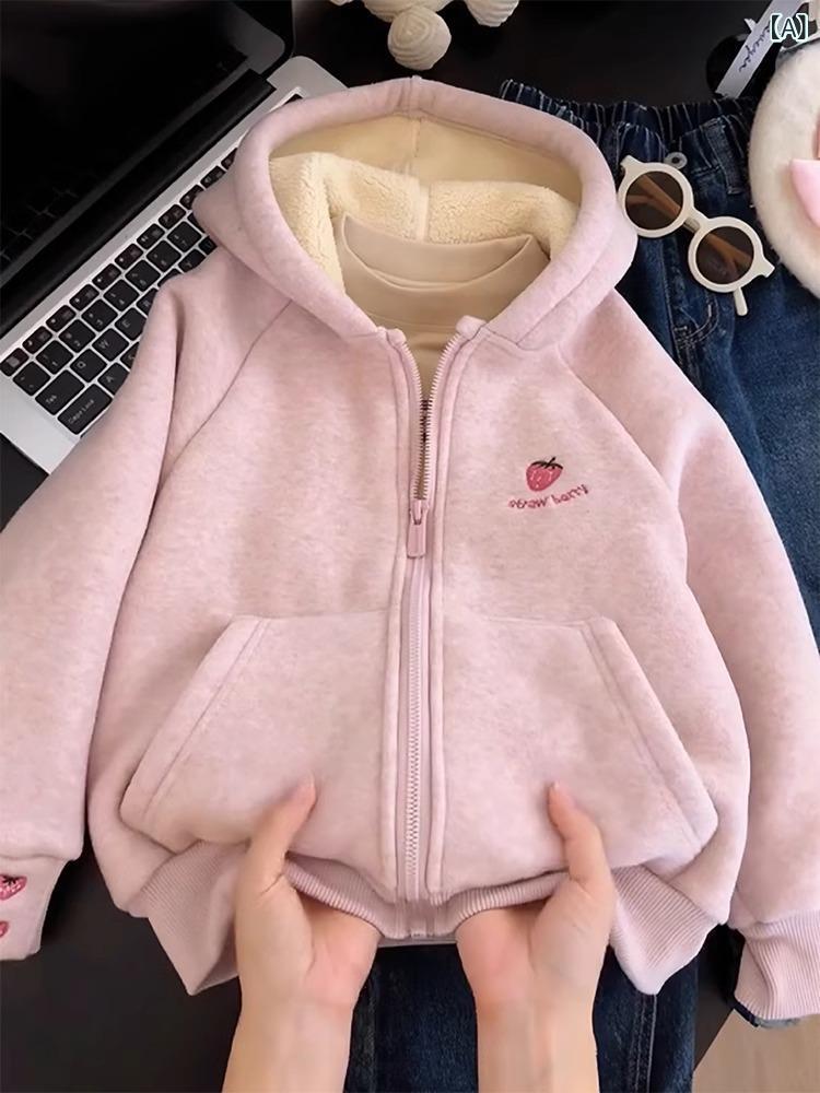 子供服 ガールズ アウター ジャケット 秋冬 長袖 裏起毛 パーカー フード付き ポリエステル ピンク系 120 130 140 150 160 170