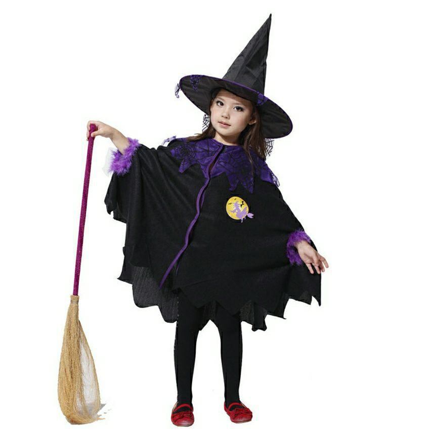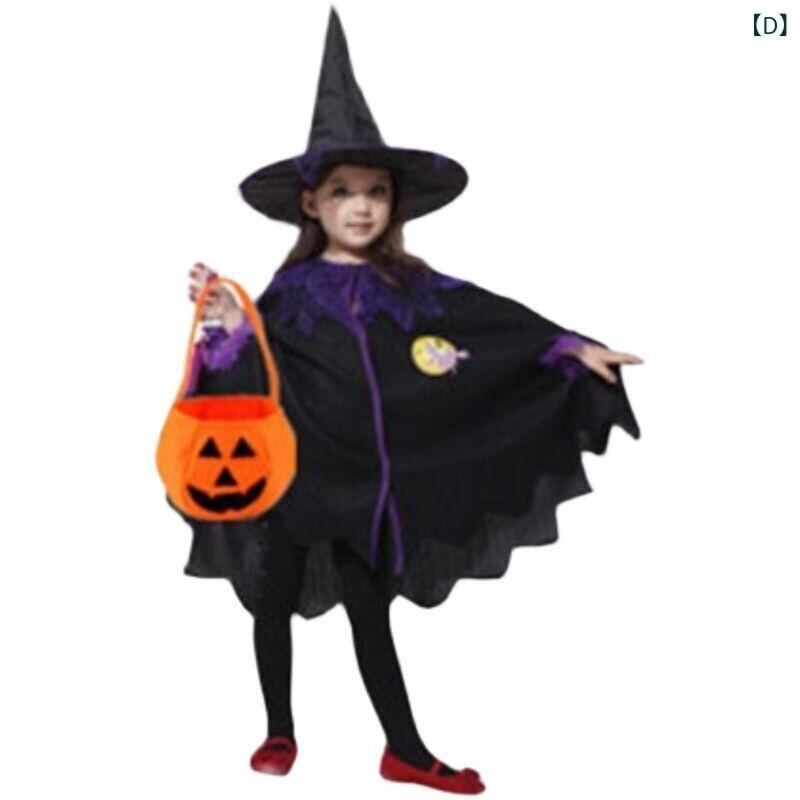 子供用コスチューム 女の子 魔女 ケープ ハロウィン コスプレ 衣装 帽子付き ほうき 南瓜袋付き かわいい 吸血鬼 仮装舞踏会 100 110 120 130 140 150 160 170