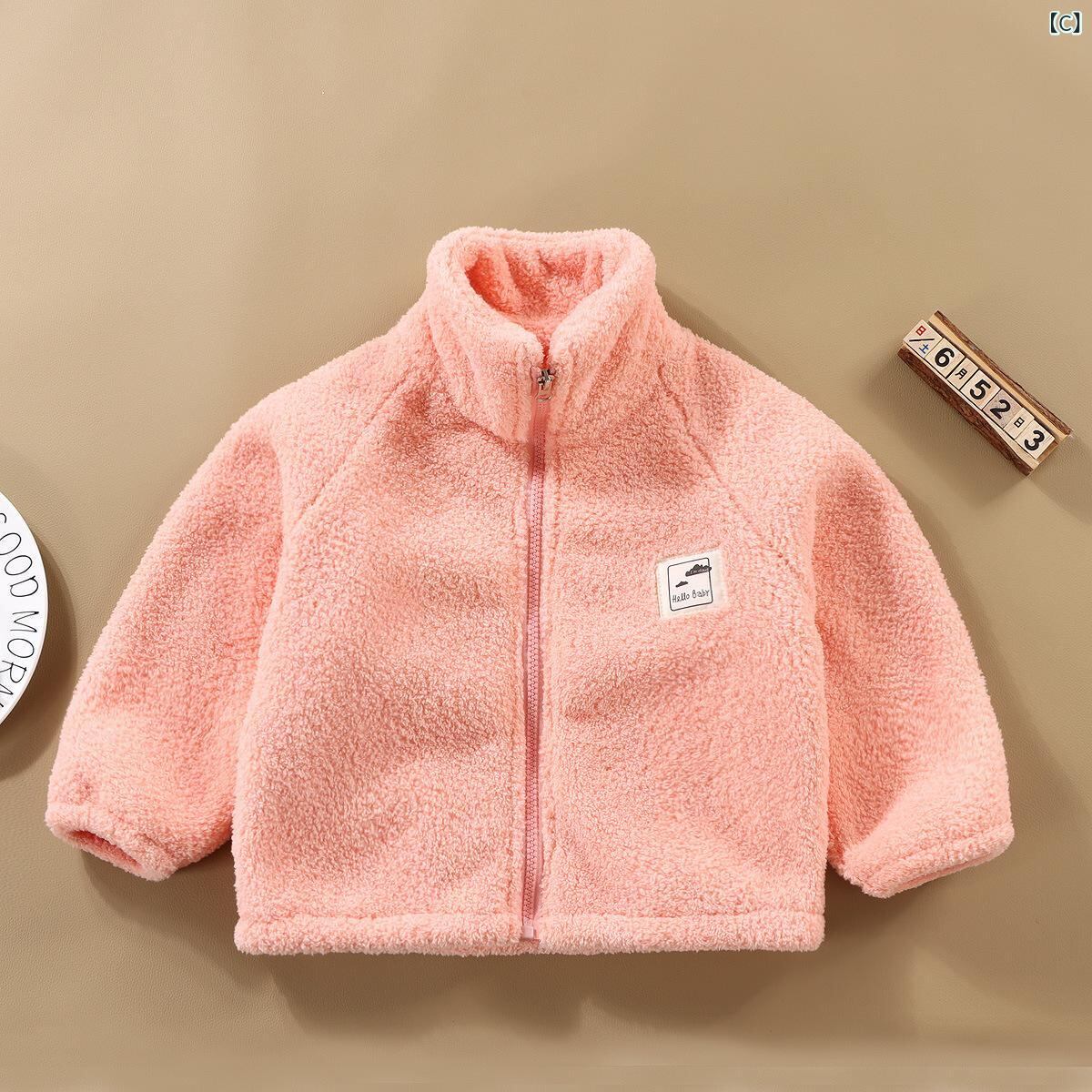 子供服 アウター 秋冬 高襟 フリース ジャケット 幼児 ベビー 上着 防寒 厚手 カーディガン 配色 ピンク系 ベージュ 90cm 100cm 110cm 120cm 130cm 140cm