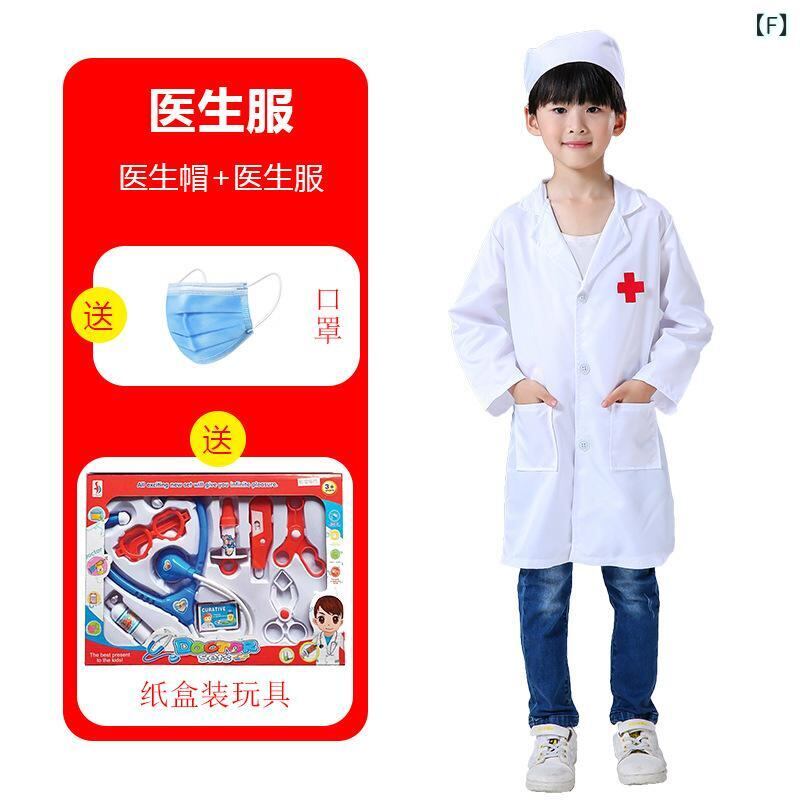 "・カラー: 医師服, 医師服+聴診器+注射器+IDカード+マスク, 医師服+豪華おもちゃセット, 医師服+紙箱おもちゃセット, 看護師服, 看護師服+聴診器+注射器+IDカード+マスク, 看護師服+豪華おもちゃセット, 看護師服+紙箱おもちゃセット",