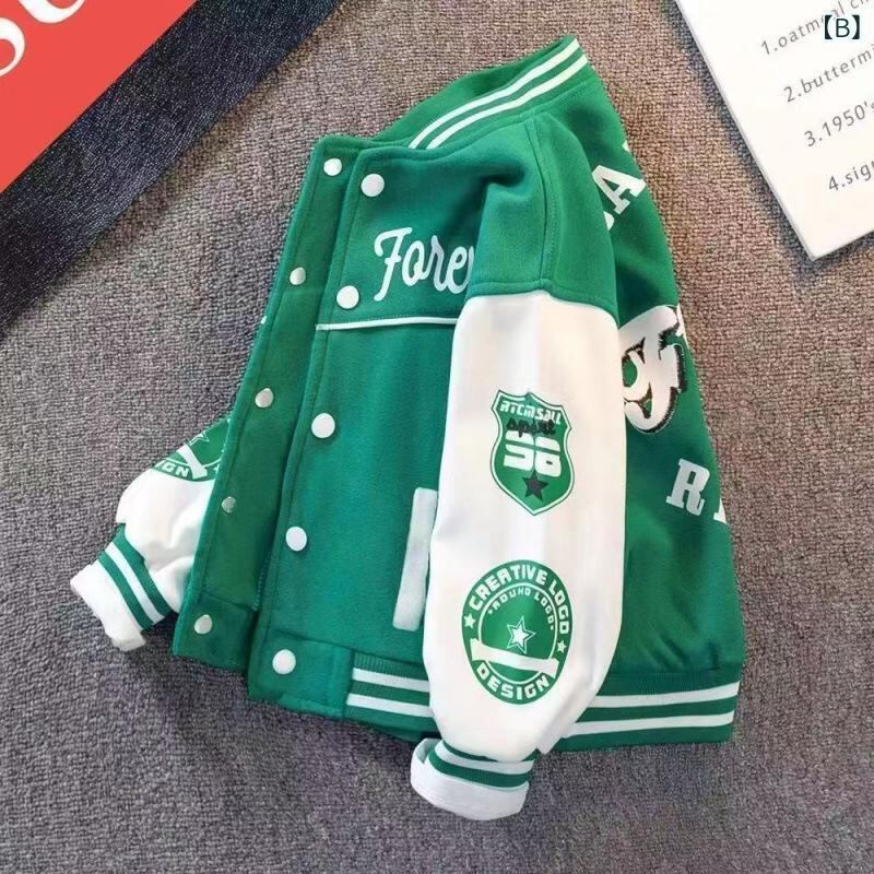 子供服 男の子用 野球 ジャケット アウター 中 বড় キッズ 春秋 カジュアル 長袖 黒 緑