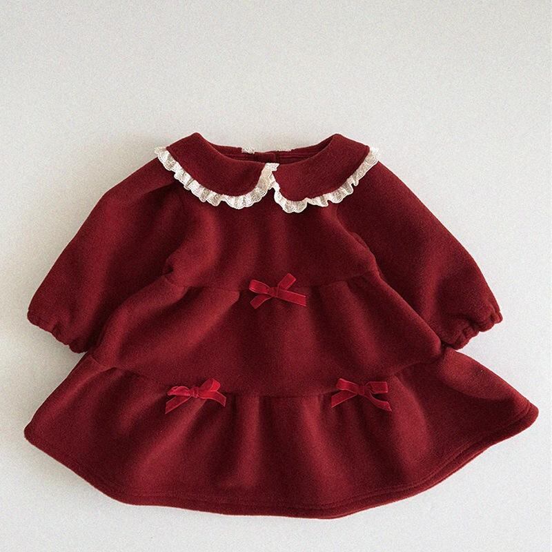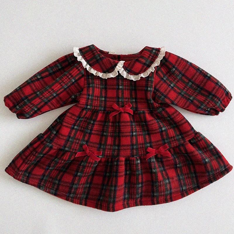 ワンピース 子供服 女の子 格子柄 襟付き 長袖 プリンセス チュールスカート かわいい 秋冬 冬 発表会 杏色 赤 80 90 100 110 120
