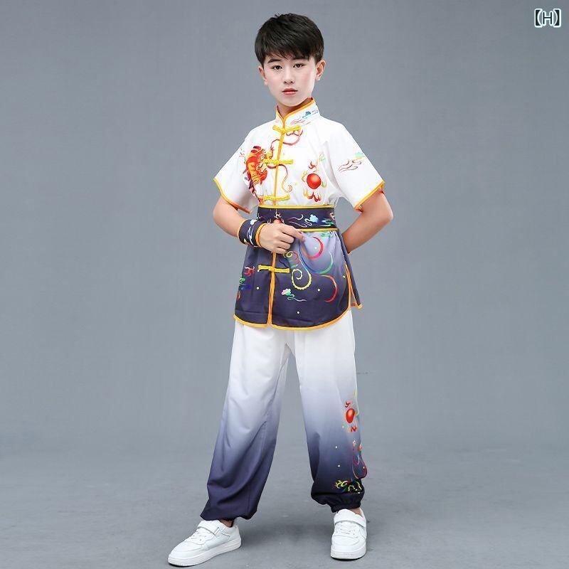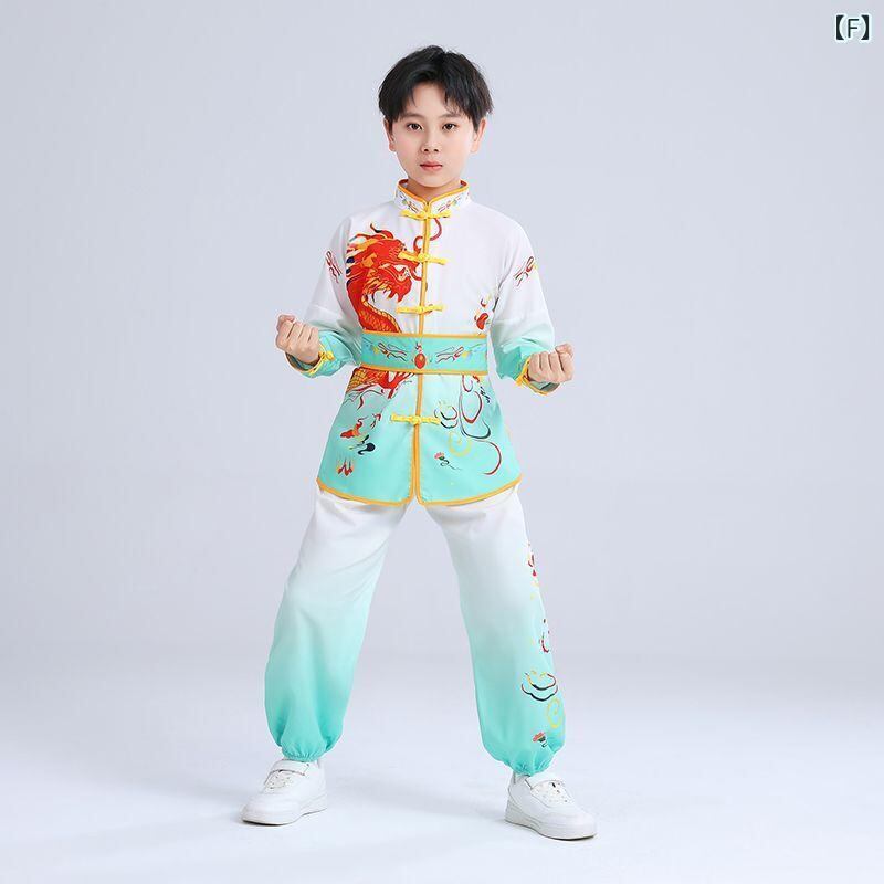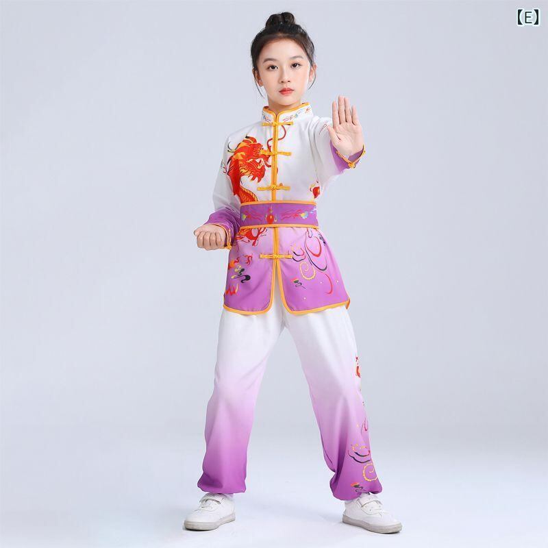 キッズ 武道着 太極拳 練習着 武術 演出服 競技用 男女兼用 子供用 伸縮性 吸湿速乾 トレーニングウェア レッド ブラック ブルー イエロー パープル グリーン