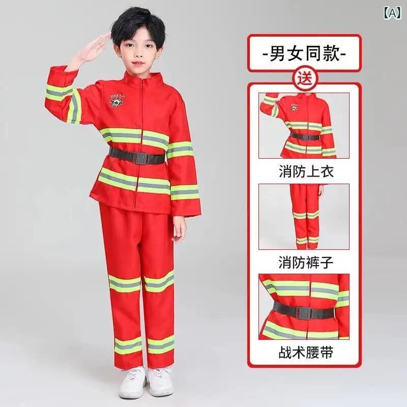 子供用 消防士 コスプレ衣装 セット 親子 お揃い 消防服 職業体験 ハロウィン イベント パーティー コットン ポリエステル