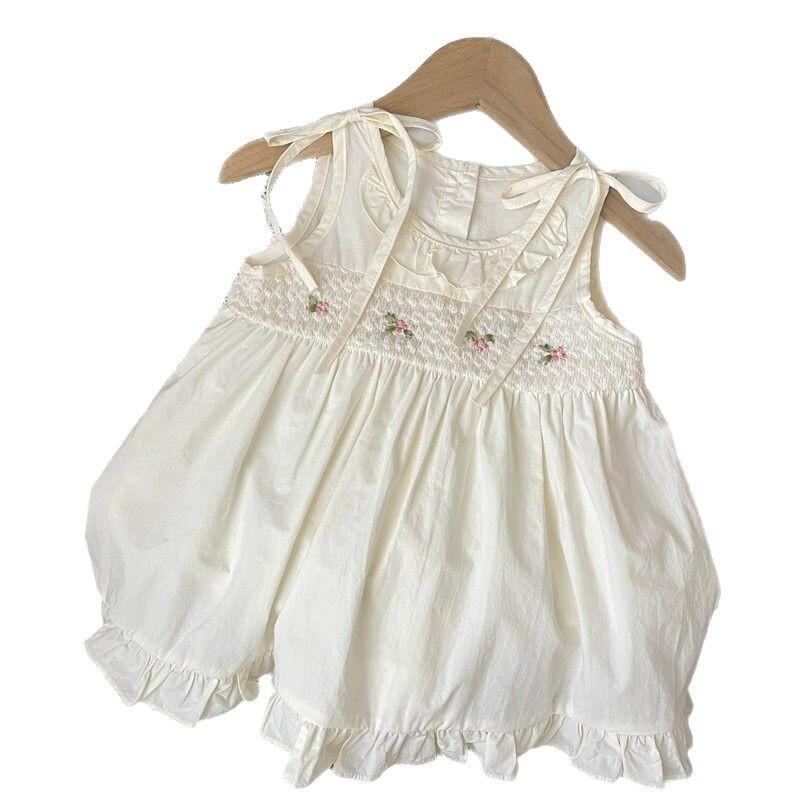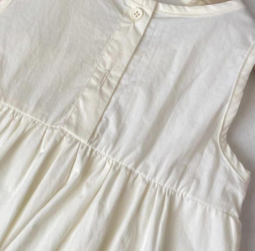 ワンピース キッズ 女の子 花柄 ノースリーブ 子供服 背心裙 Aライン フリル かわいい 綿 夏 ベージュ
