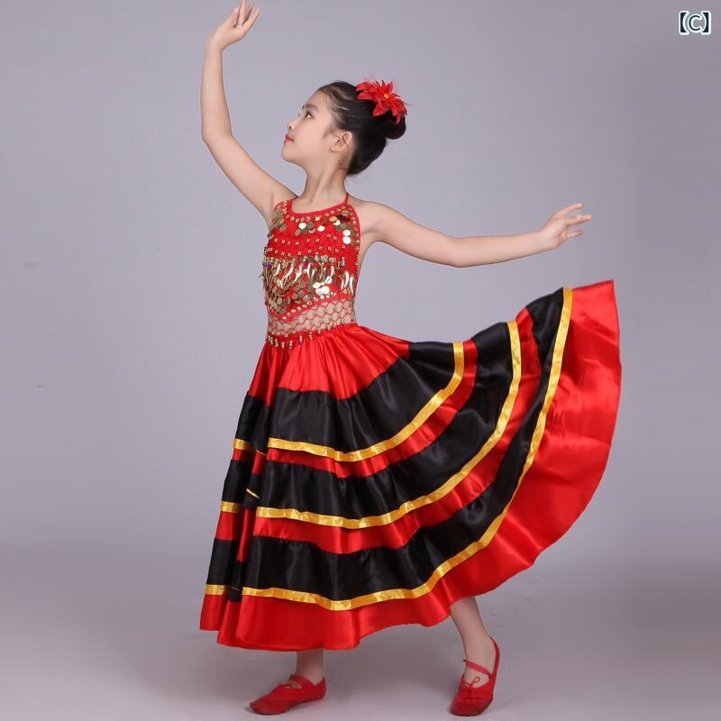 子供用 舞台衣装 スペイン風 闘牛 スカート 女の子 バレエ 社交ダンス チュール 大判 フレアスカート パフォーマンス 発表会 練習着 レッスン着