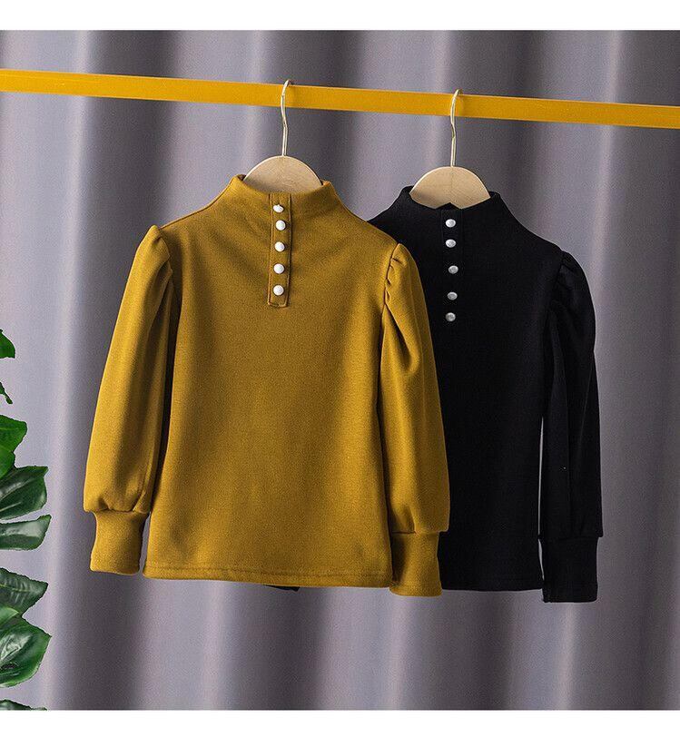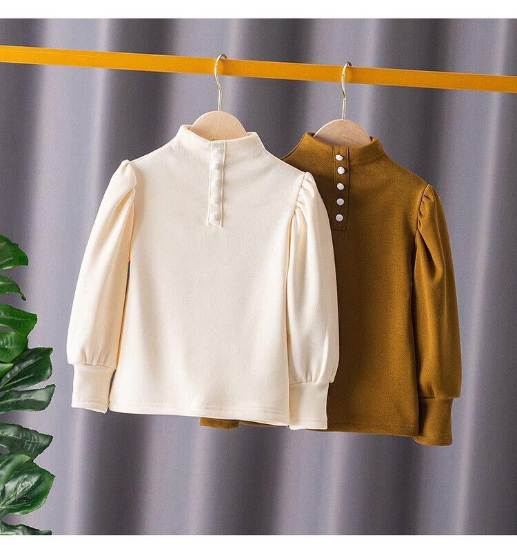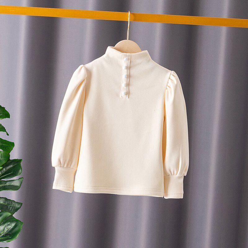 子供服 ガールズ 裏起毛 トップス カットソー 三つボタン 無地 普段着 ミルクティー ベージュ ブラック 110 120 130 140 150 160 秋冬