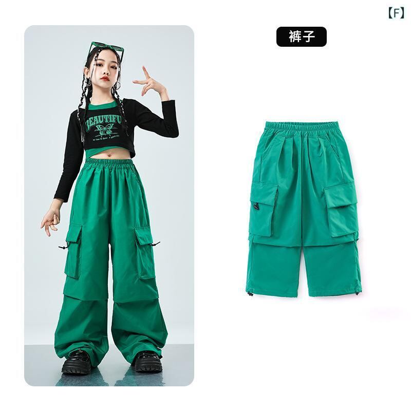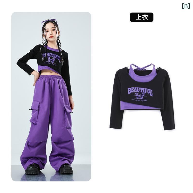 ダンス衣装 キッズ 女の子 ガールズ チアダンス 힙합 上下セット ジャズダンス ストリート HIPHOP 子供 発表会 演奏会 舞台用 普段使い レッスン着 練習着 かわいい