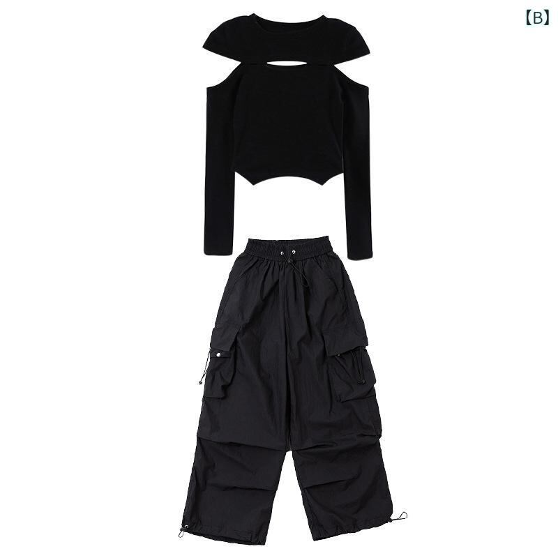 子供用ダンス衣装 女の子 秋冬 ジャズダンス 練習着 上下セット ヒップホップ ストリートダンス 舞台衣装 長袖トップス ロングパンツ ブラック ホワイト 110cm 120cm 130cm 140cm 150cm 160cm 170cm 180cm
