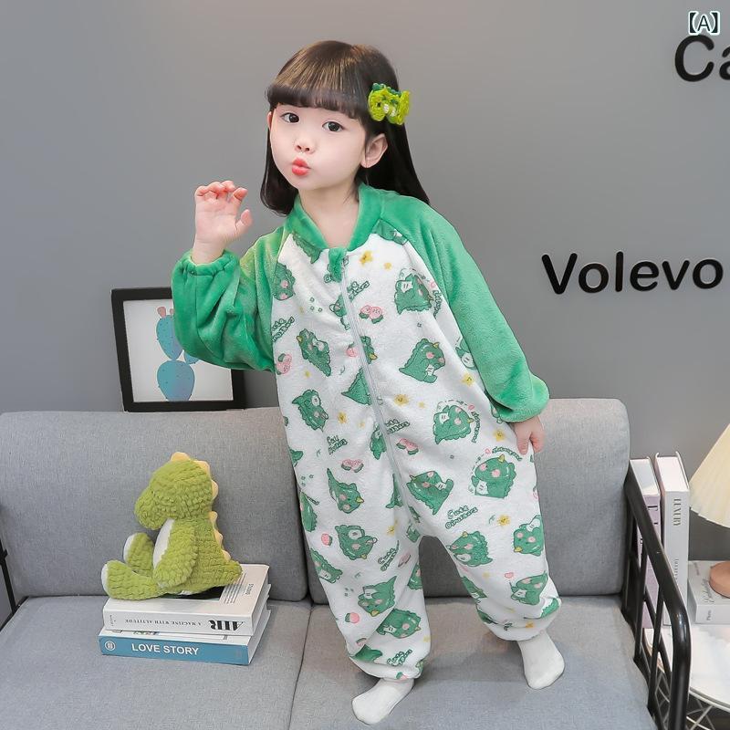 ベビー服 秋冬 ベビー パジャマ カバーオール ロンパース 厚手 フランネル 男女兼用 赤ちゃん 寝袋 分離可能 かわいい 恐竜柄 80 90 100 110