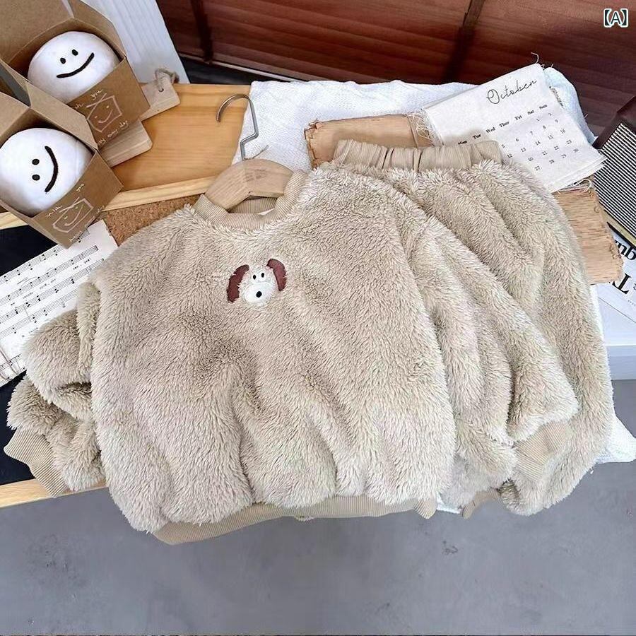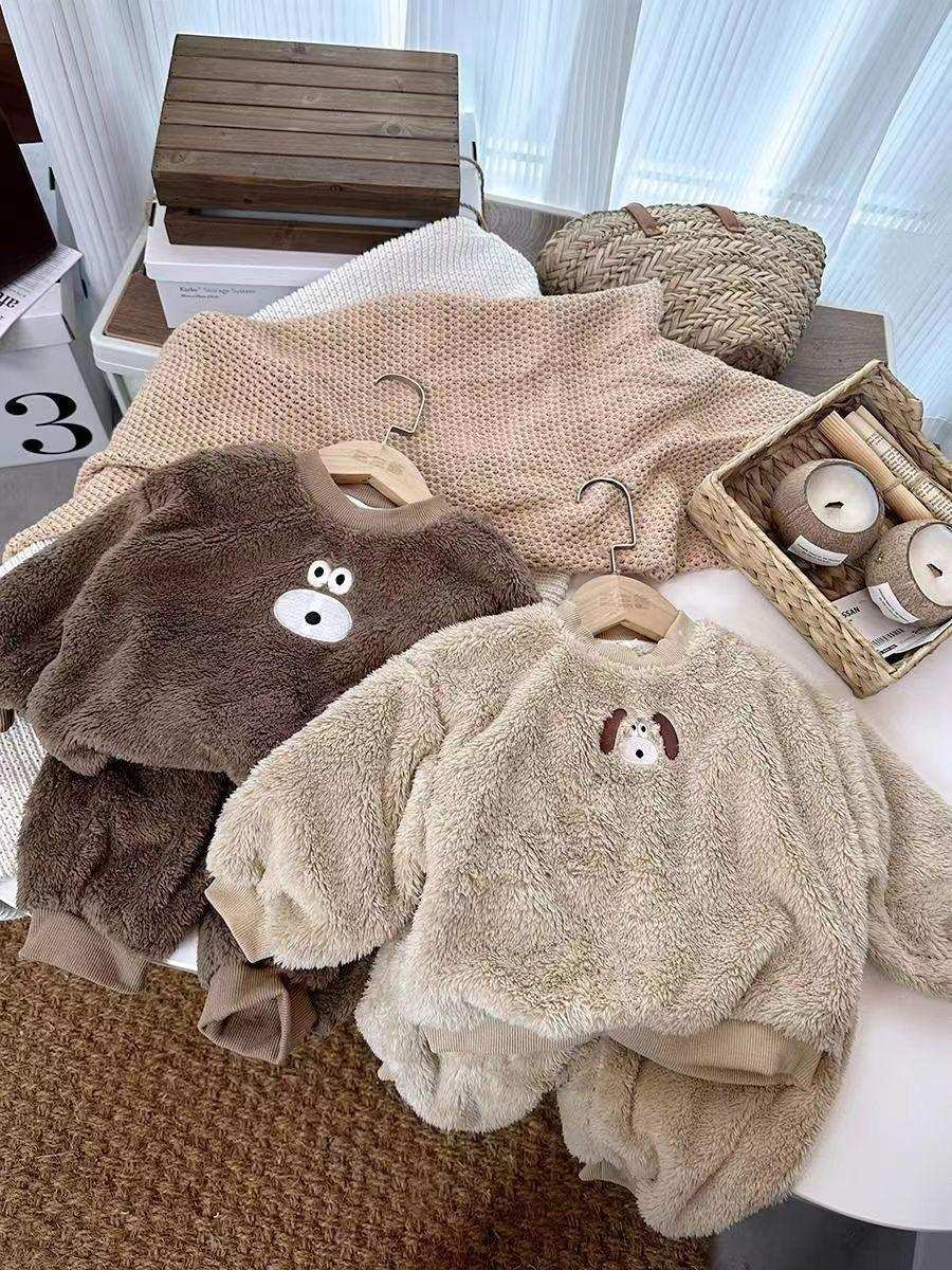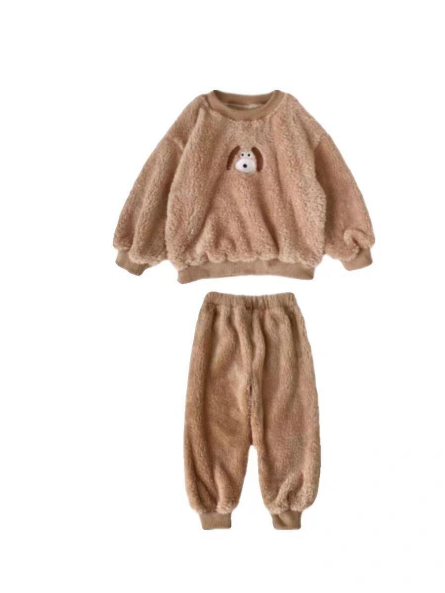 子供用パジャマ 上下セット フランネル 暖か 秋冬 男女兼用 ルームウェア かわいい 韓国風 アプリコット コーヒー色 90 100 110 120 130cm 部屋着 寝間着